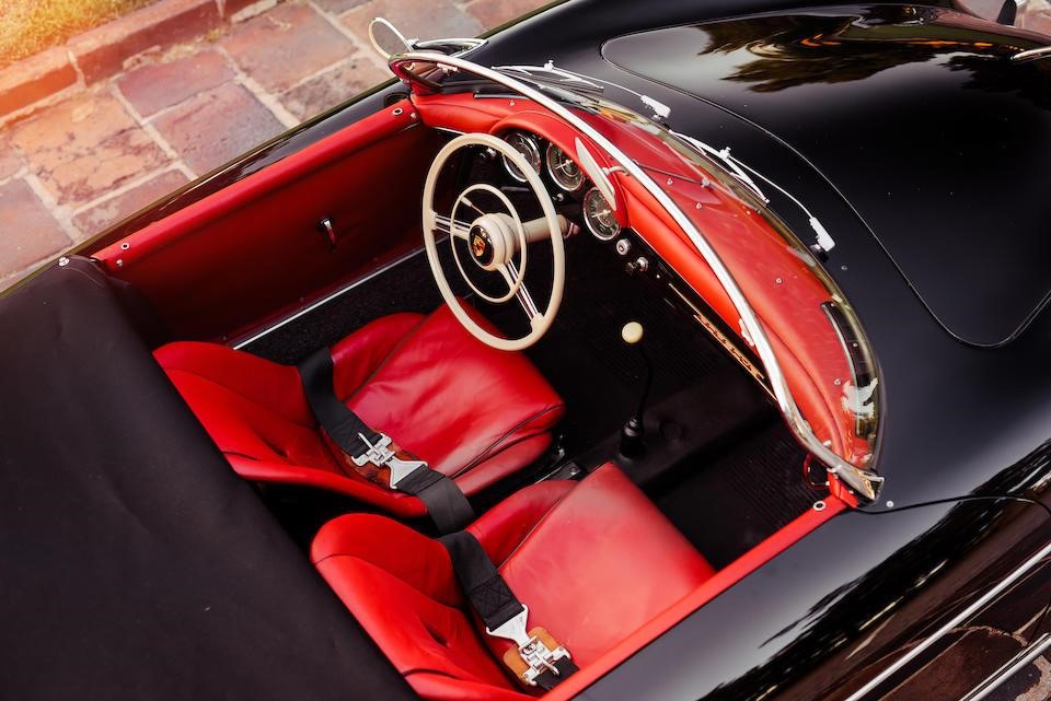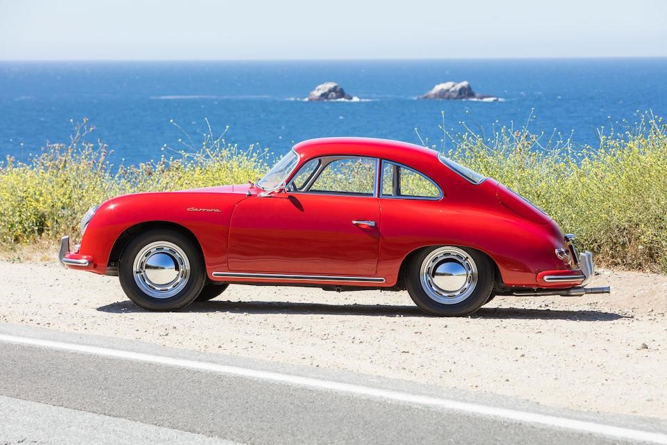 105255 : 12/1958, 356A 1600 GS Carrera De Luxe Coupé, moteur 93038, enjoliveurs de roues chromés, pneus Continental Super Record, Rouge Rubis, vinyle noir.