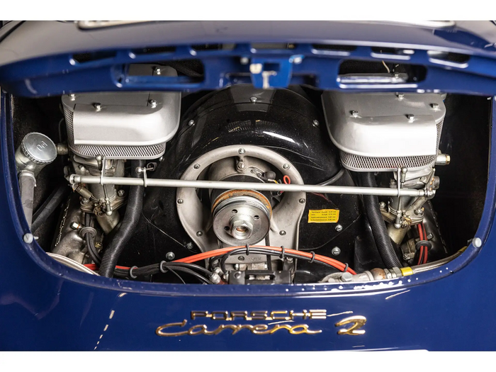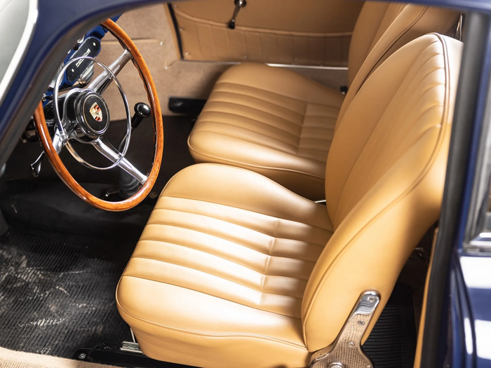 122.866 : 1963, 356 B Carrera 2 2000 GS, moteur 97186, toit ouvrant, Bali Blau, simili brun clair.