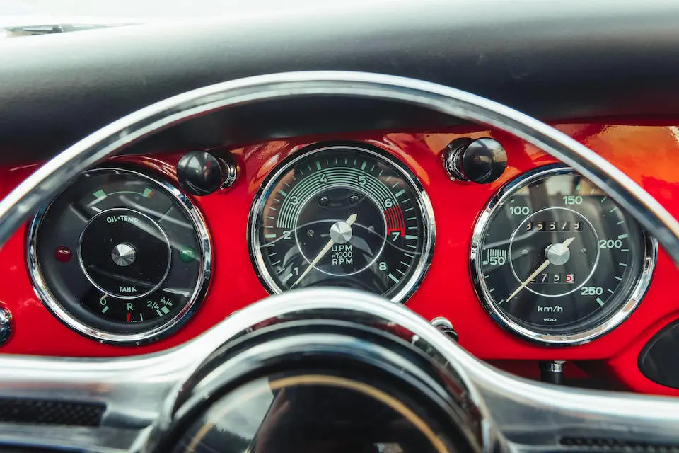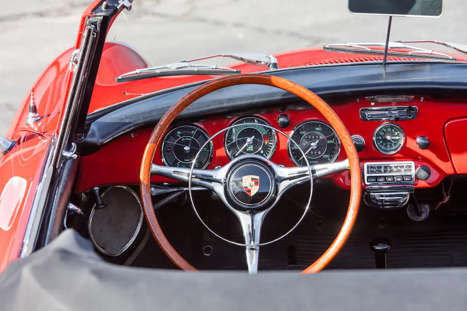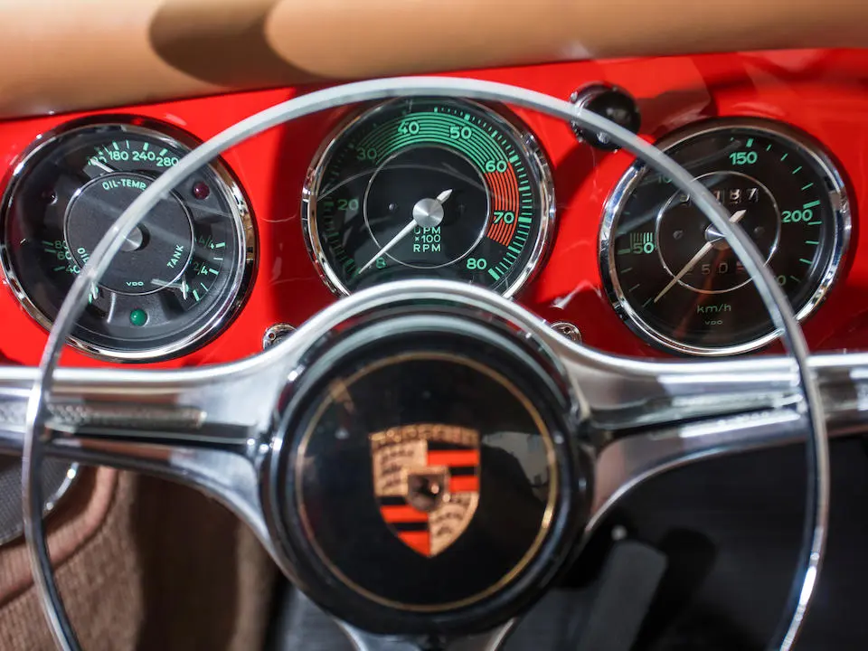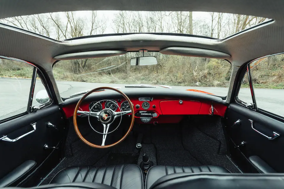 129.913 : 1964, 356C Carrera 2, Signal Rot, simili noir/velours gris.