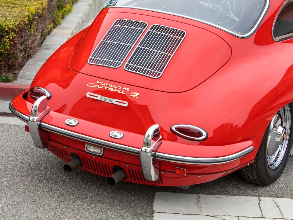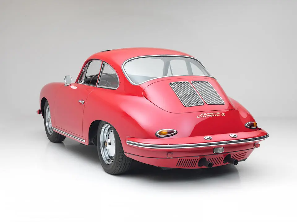 120.081 : 17/05/1962, 356 B Carrera 2 2000 GS Coupé, moteur Type 587/1 97147, toit ouvrant, enjoliveurs de roues chromés, cerclo-avertisseur chromé, tapis de sol en fibre de coco, appuie-têtes, radio Blaupunkt Köln avec 1 haut-parleurs, Signalrot, cuir et velours noirs.