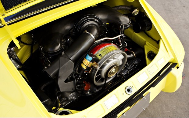 La Carrera utilise la base du bloc 2,4 litres de la 911 S dont elle conserve la pompe mécanique, le vilebrequin, le système d’injection indirecte et la lubrification par carter sec.