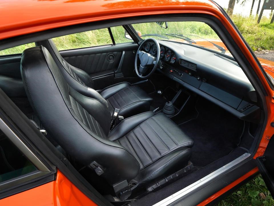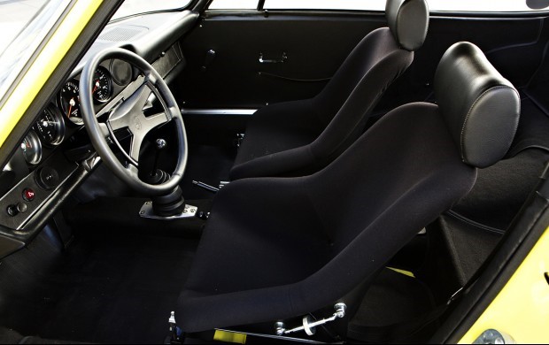 RS légère, compétition-client, pare-chocs en polyester avec logement pour le radiateur d’huile, pas de montre, pas de moquette, suppression des banquettes arrières de secours, garnitures et rembourrages allégés, sièges Recaro avec dossier réglable, 960 kg.