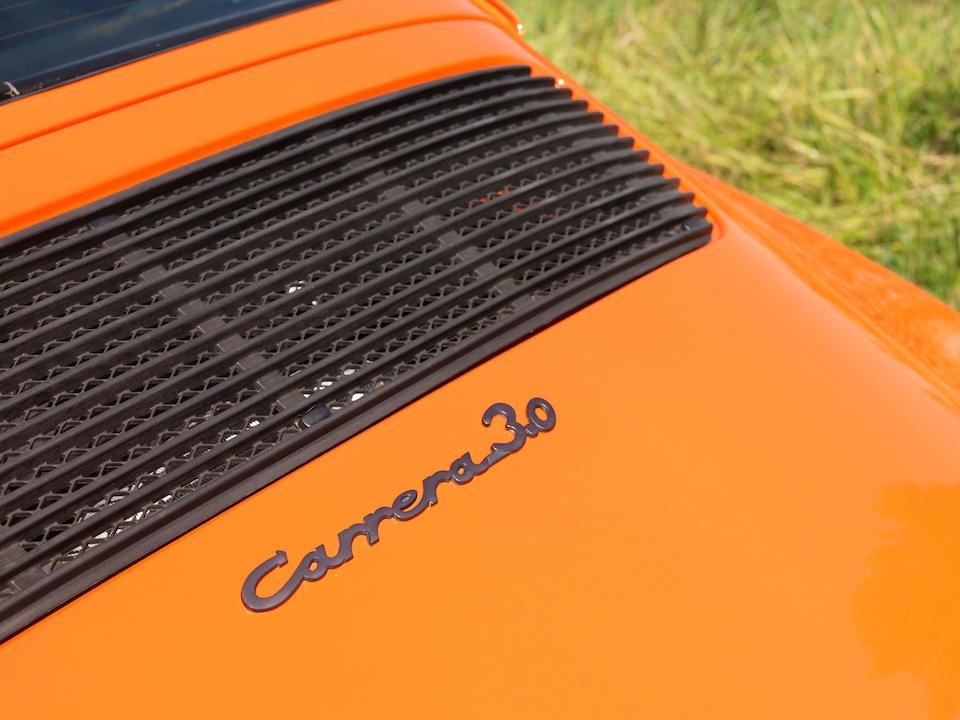 Nouvel avant avec clignotants dans les pare-chocs. Les pare-chocs sont montés sur soufflets et répondent aux nouvelles normes américaines de sécurité (les voitures aux normes US se caractérisent par de petits amortisseurs incorporés dans les pare-chocs). Bandeau arrière rouge marqué Porsche à l’arrière, rétroviseur extérieur peint de la couleur de la caisse, lave-phares, nouveau bas de caisse avant, nouvelles jantes ATS (les jantes Fuchs sont disponibles en option). La Carrera se distingue des versions 911 par des ailes élargies, un entourage de vitres et des poignées de portes noir mat, des scripts Carrera sur les bas de caisse.