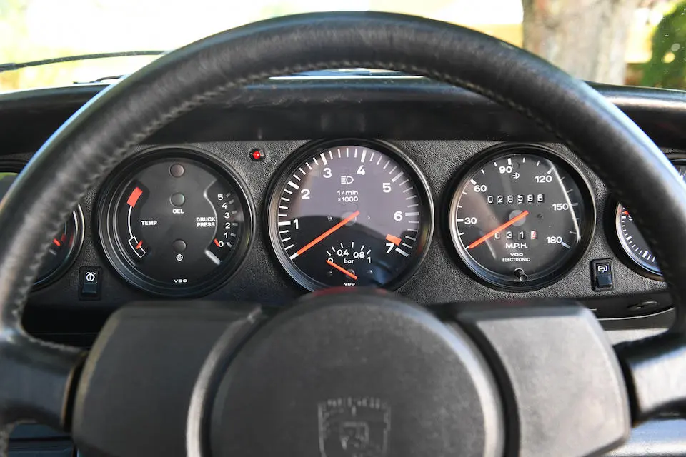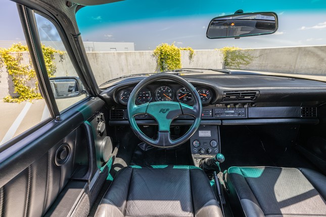 WP0ZZZ93ZKS000578 : 1989, Turbo S, 1/55, 7e/10 commandées par Sonauto, moteur 67K00745, boîte de vitesses G5050-2-K01992, préparation RUF : injection modifiée, échappement 4R, contrôle de suralimentation dans l’habitacle, compteurs RUF, Schwartz, cuir noir.