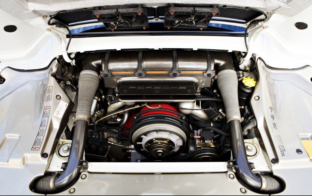 6 cylindres opposés à plat toujours refroidi par air via une courroie pour les parois de cylindre mais bénéficiant d’un refroidissement par eau pour les culasses (système déjà utilisé pour les 935 en endurance).