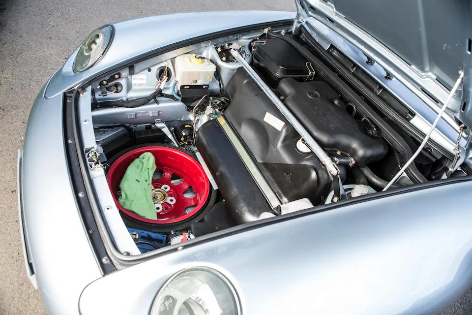 La RSR est équipée d’un arceau-cage Matter, d’une barre anti-rapprochement, d’amortisseurs Bilstein réglables en compression et en détente, d’extensions d’ailes et d’un spoiler avant redessiné avec capot en aluminium.