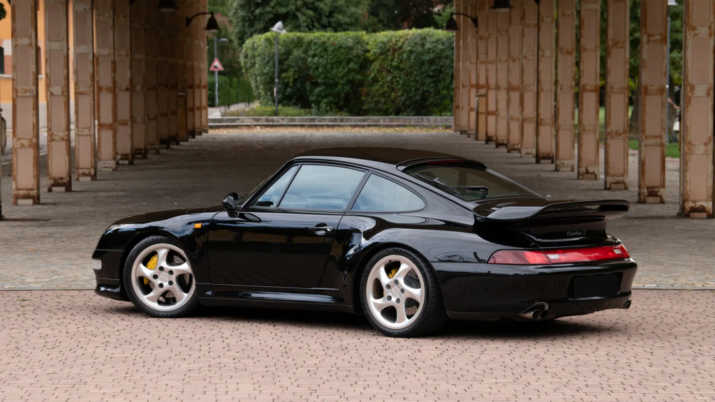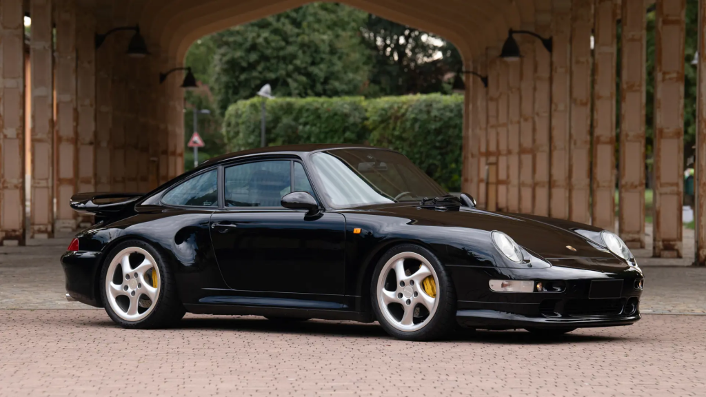 WP0AC2990VS375827 : 1997, Turbo S, sièges baquet Racing, pas de sièges arrières, pas d’essuie-glace arrière, installation hifi avec chargeur CD 6 disques, intérieur tout cuir, Glacier Weiss, cuir noir.