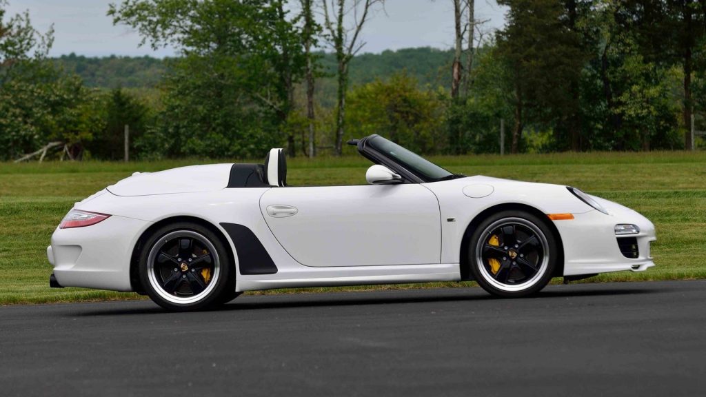 2005 : Porsche présente la version Speedster sur la base du cabriolet 4S à ailes élargies mais en 2 roues motrices avec des portes en aluminium. La voiture reprend le capotage à double bulle arrière, capote à commande électrique et intérieur cuir. Les jantes style Fuchs et les boucliers avant et arrière sont repris de la Sport Classic.