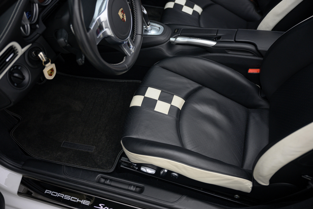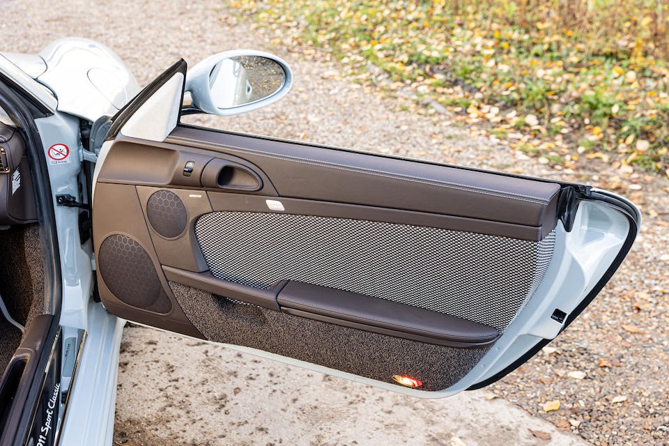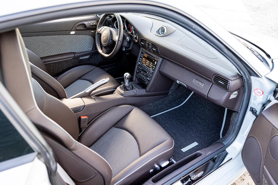 09/2009 : Salon de Francfort (D) : Porsche annonce une version Sport Classic sur base de Carrera S limitée à 250 exemplaires. La voiture reprend la structure de la Carrera 4 sans la transmission intégrale, avec une évocation de la Carrera RS 2,7 l dont elle reprend l’aileron arrière (avec 2 grilles de refroidissement) et un toit à double bulle. Bouclier avant et jupes latérales de la couleur de la caisse Gris Sport Classic avec double bande gris plus foncé. Garniture des contreportes en damier, cuir Expresso (marron) passepoilé. Plaques du modèles sur le couvercle de boîte à gants et sur les seuils de porte en aluminium. Compteurs cerclés aluminium à fond gris des bandes de la carrosserie, levier de frein à main aluminium. Sièges chauffants à commande électrique, chronomètre, cruise control,