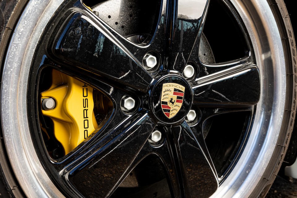 La voiture est équipée de freins à disques en carbone céramique, du Sport Chrono Plus Package et de jantes dans le style Fuchs.