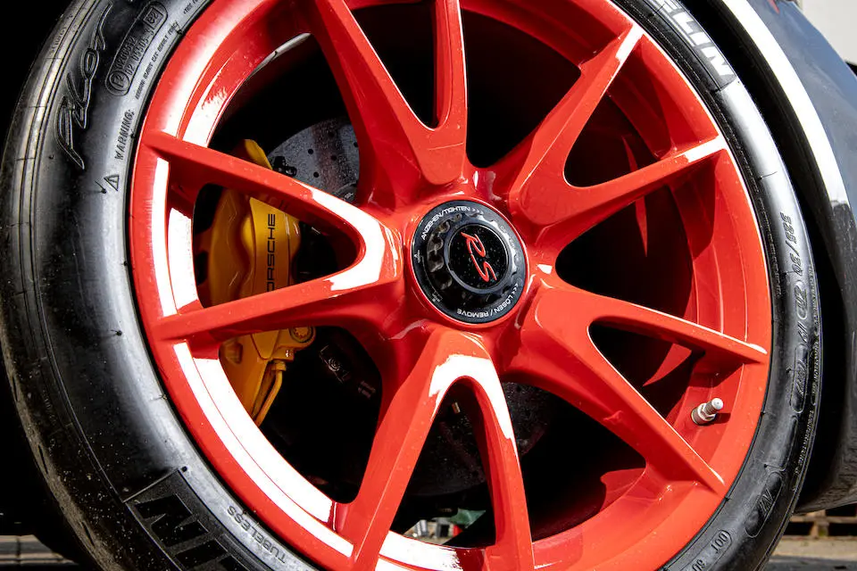 Freins en carbone céramique, jantes aluminium 9 ½J18/12J18, pneus Michelin Racing 24/68-12.