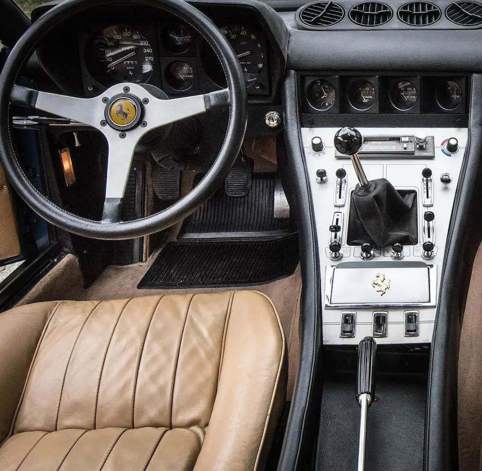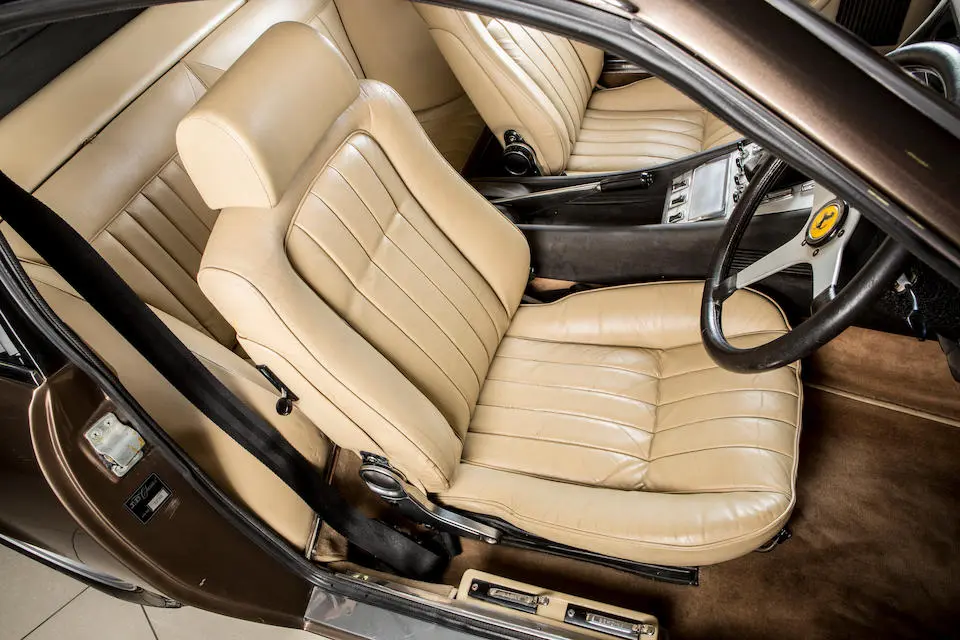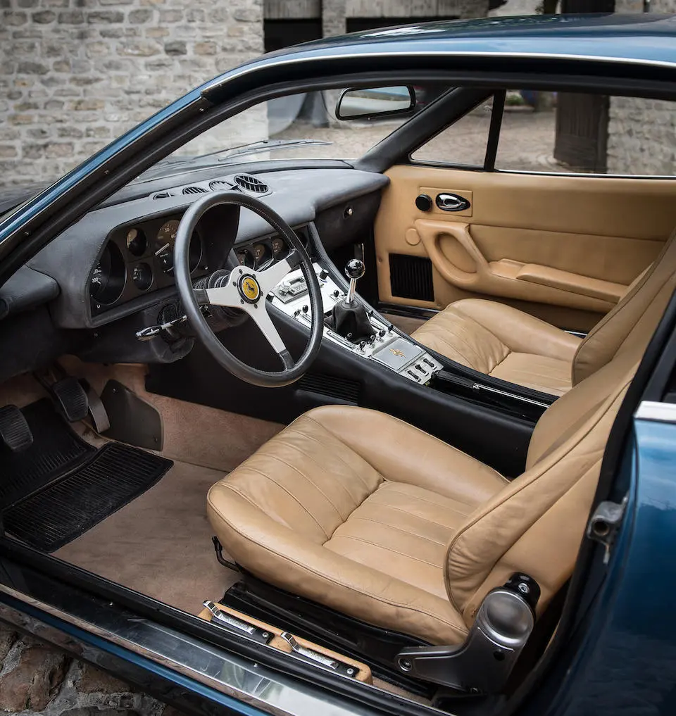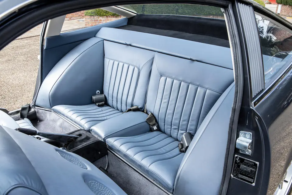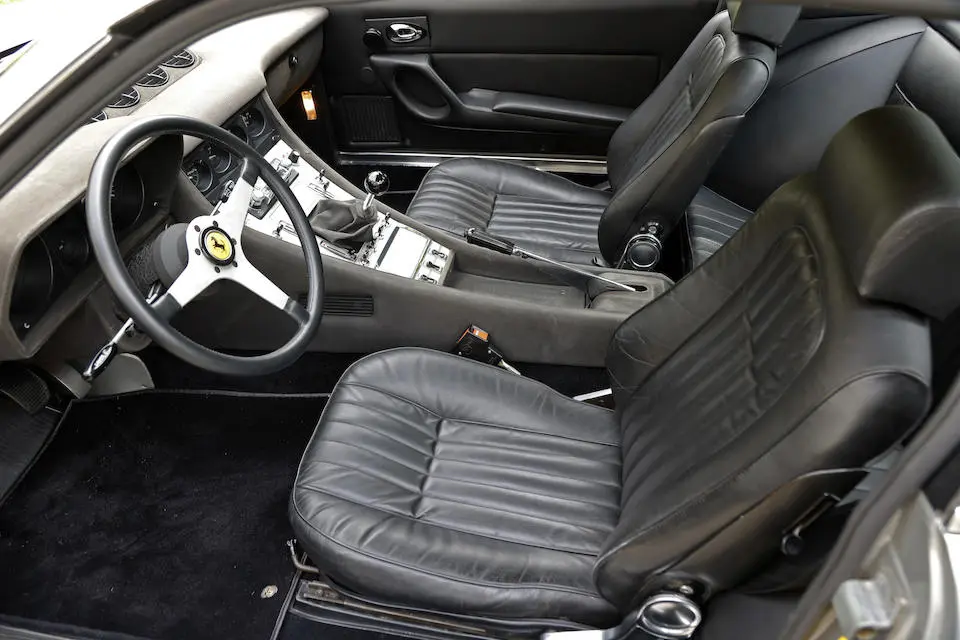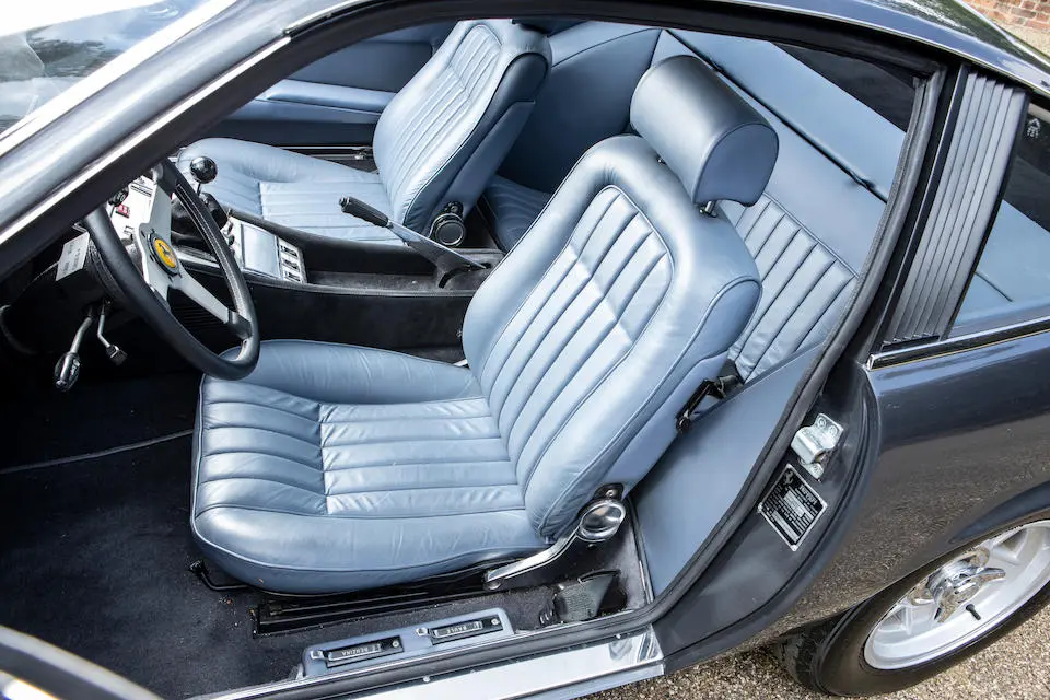 15635 : 07/1972, climatisation, vitres électriques, pré-équipement radio, compteur en miles, Grigio Argento, cuir Nero Cogolo.