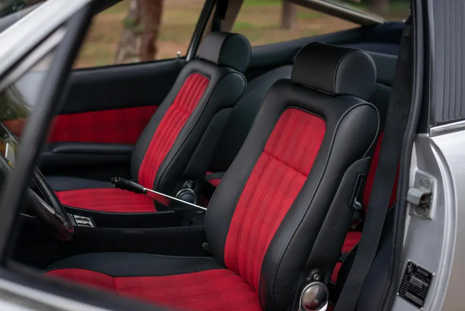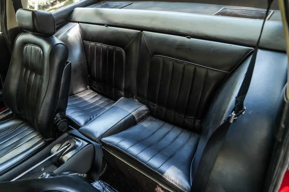 15199 : 1972, Jantes à rayons Borrani, Rosso Rubino, cuir noir.
