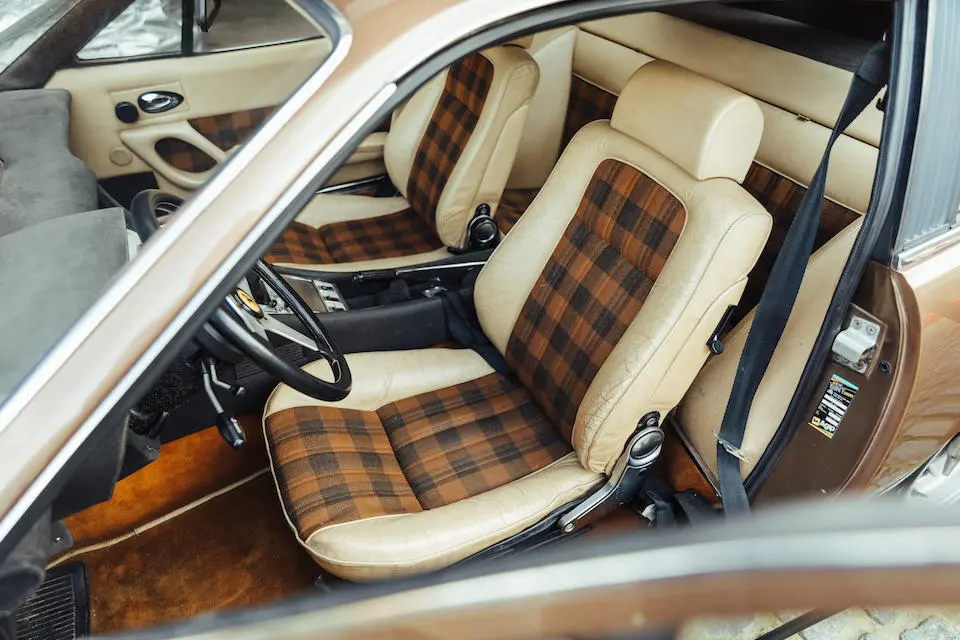 15135 : 03/1972, Marrone Colorado, cuir beige/drap écossais.