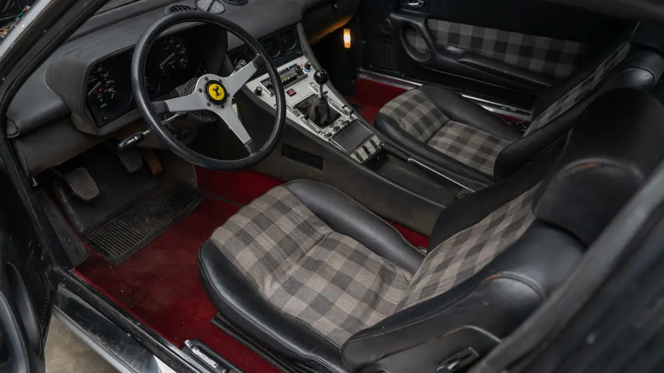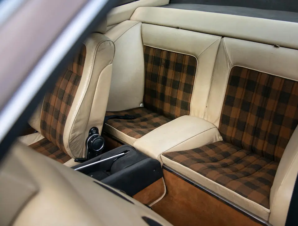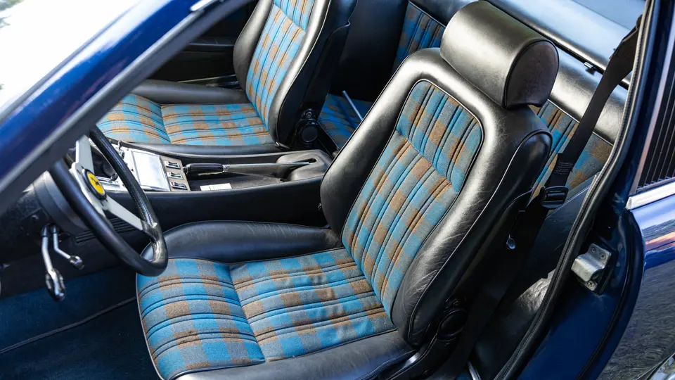 15883 : 08/1972, climatisation, vitres électriques, dégivrage lunette arrière, Grigio Argento (2.443.048), cuir Nero Tortolo (Panno 22) et drap écossais.