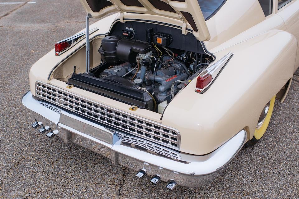 1049 : 1948, moteur 335-28, la dernière complète avec moteur et boîte de vitesses montés par l’usine, 1/8 complétées après la faillite de l’usine, Waltz Blue. Reste à l’usine.