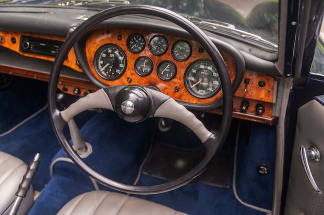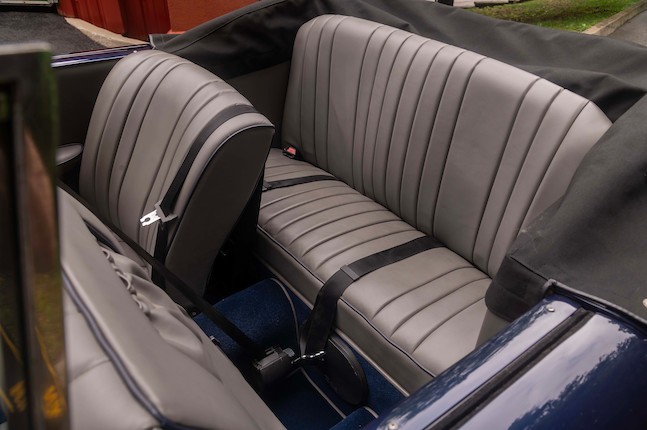 Bleu foncé métallisé, cuir gris, moteur 100B2 4217, culasse polie, sièges de soupapes renforcés, soupapes agrandies, arbres à cames sport, pistons et segments Cosworth, nouvelles bielles, échappement 6 en 1, 130 ch (restauration et modifications usine).