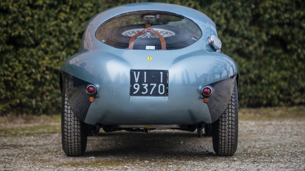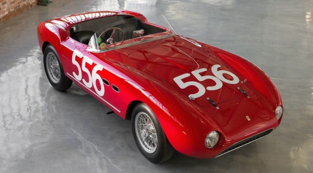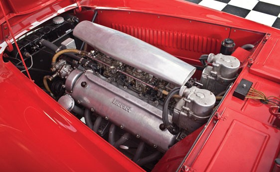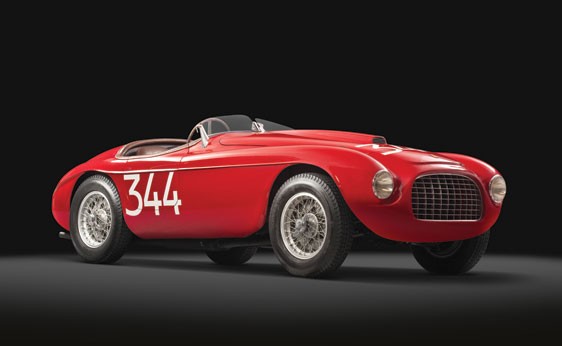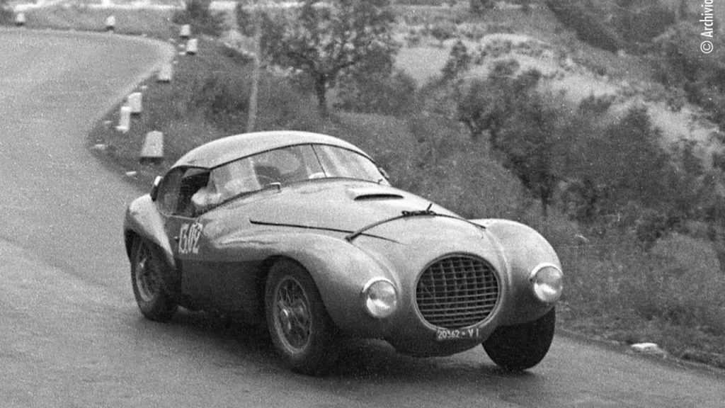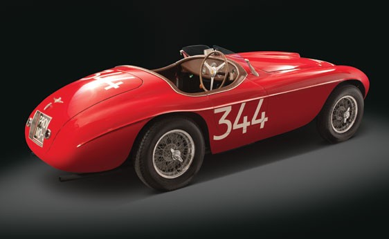 006 M : 16/03/1949, 166 MM, Barquette Lusso par Touring (caisse 3243), capot court, prise d’air plate sur le capot, Rouge.