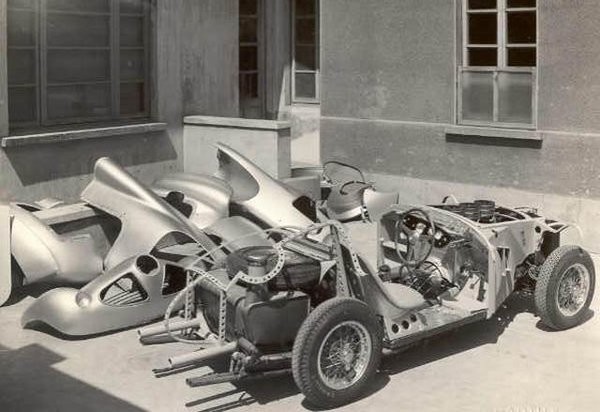 002 M : 1948, 166 MM, Barquette Lusso par Touring, CAD, moteur 022I, capot court avec prises d’air.