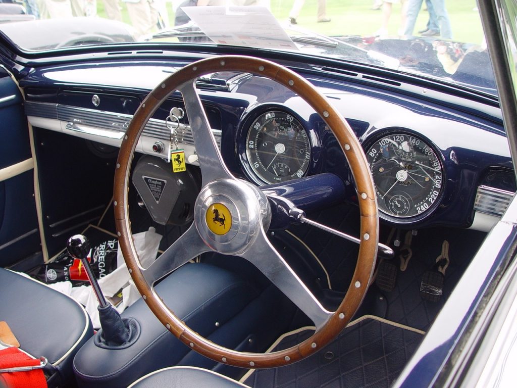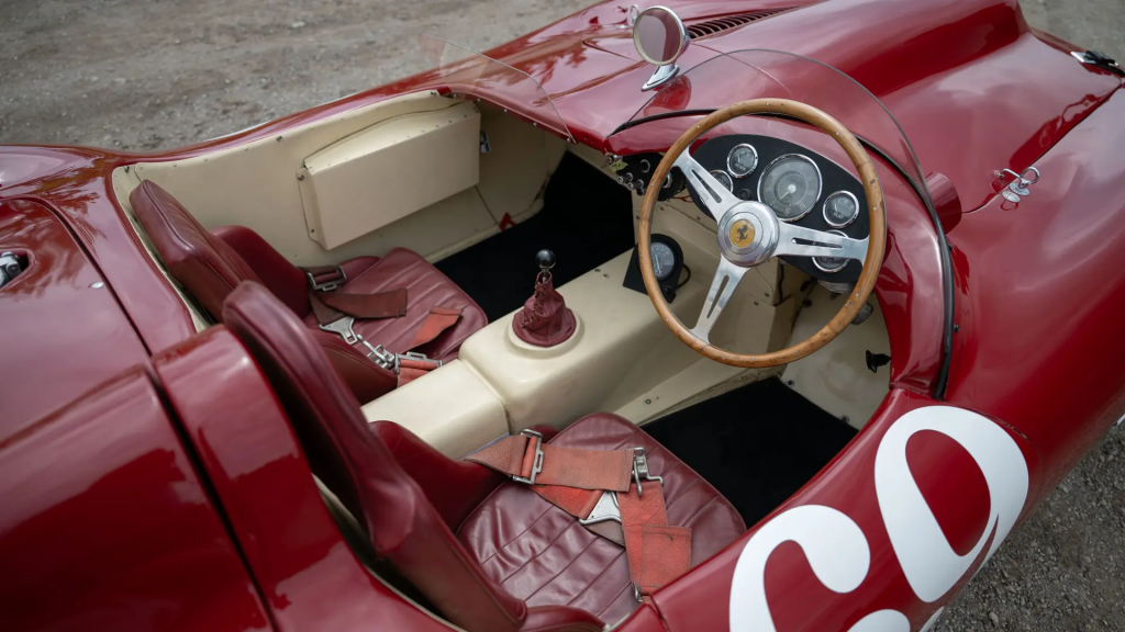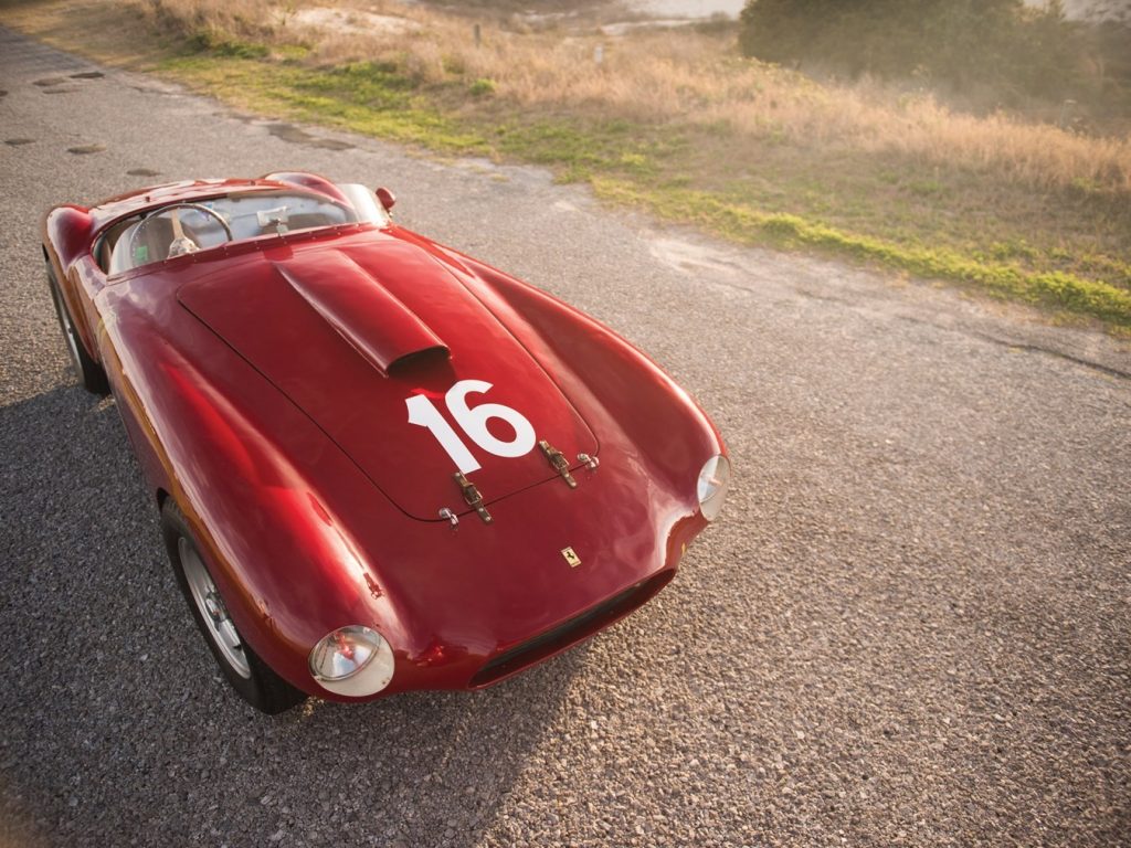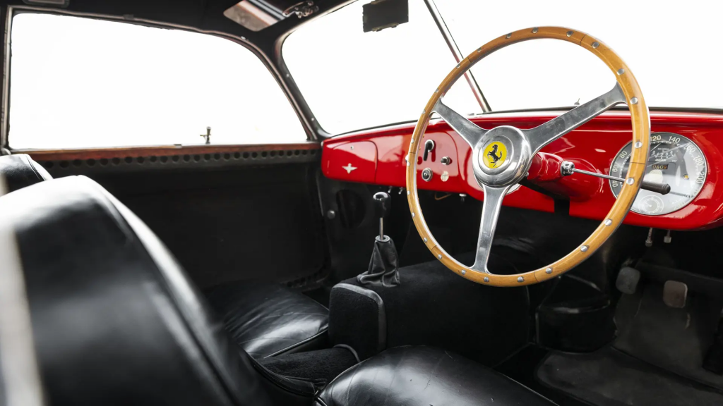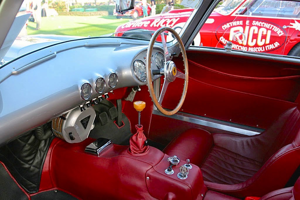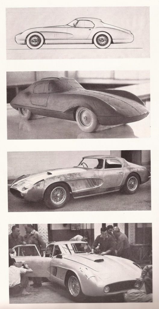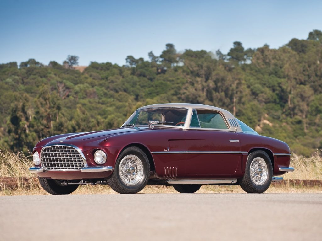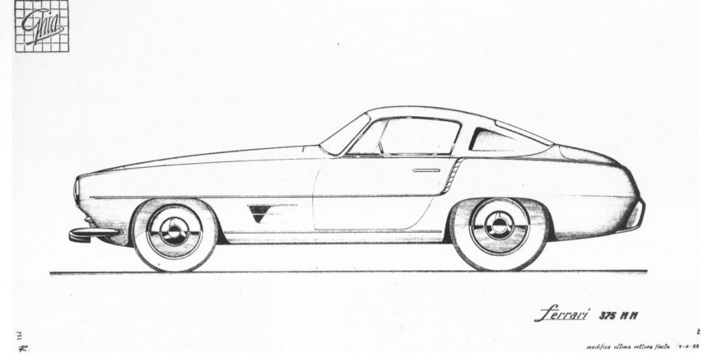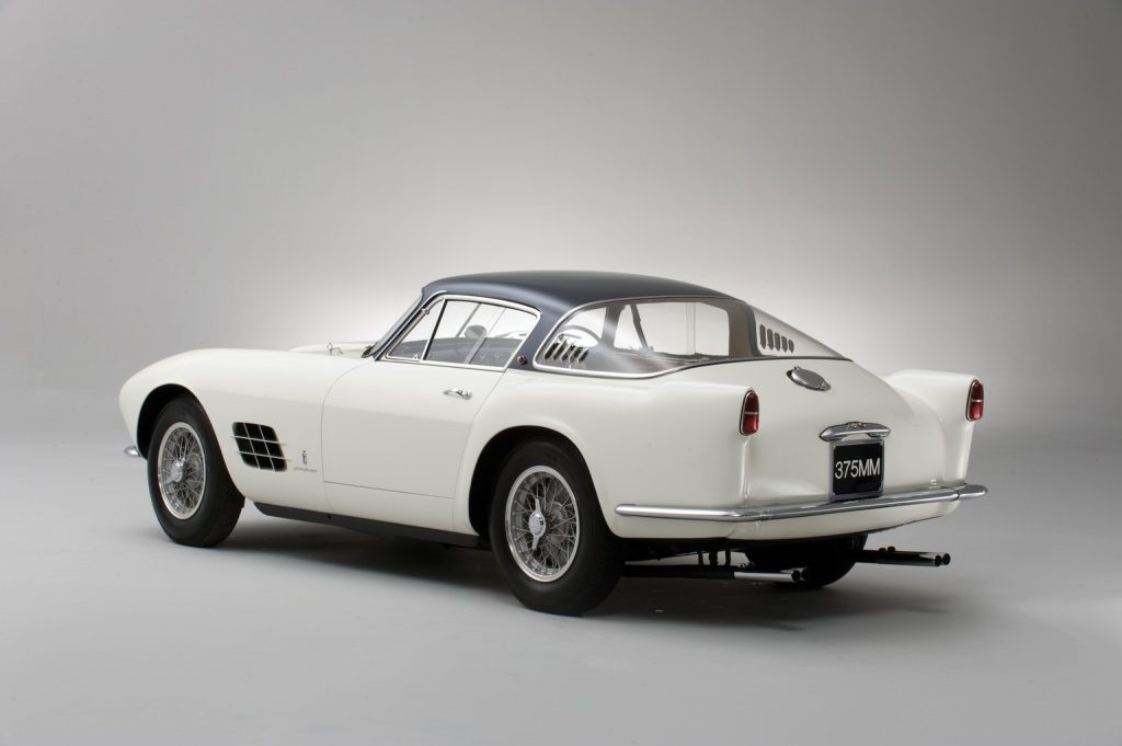 0416 AM : 1954, 375MM, Berlinette par Pinin Farina (livrée 08/07/1954), sièges réglables en hauteur, longueur et largeur, pas d’écope de refroidissement de freins derrière les portières, goulotte de remplissage d’essence sur aile arrière, capot plus petit avec ouverture séparée pour le radiateur, gris clair, cuir brun.