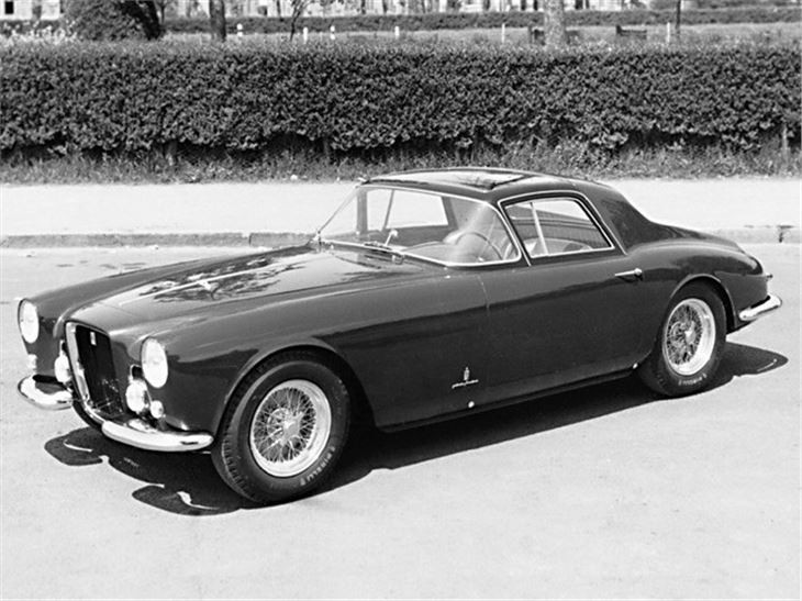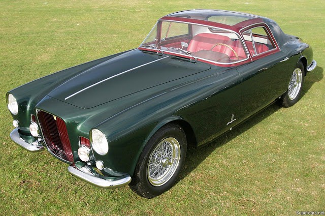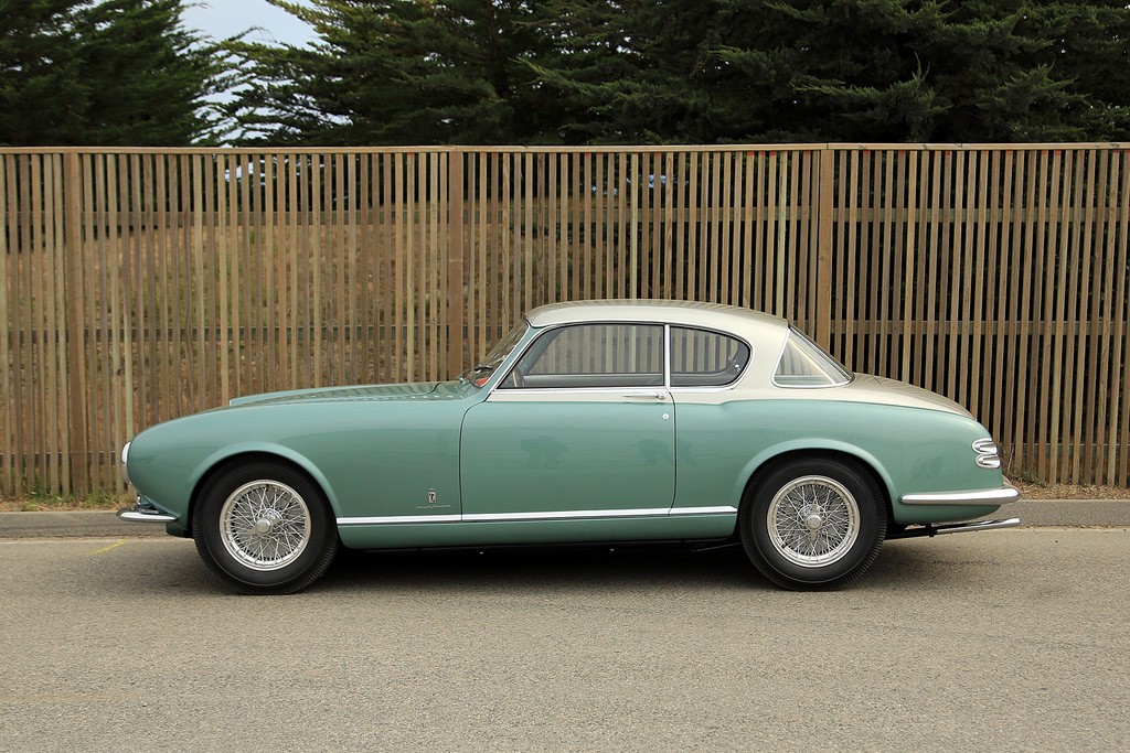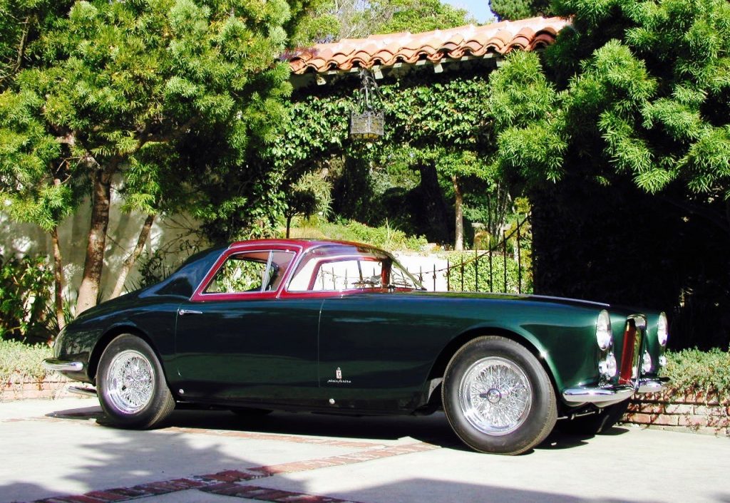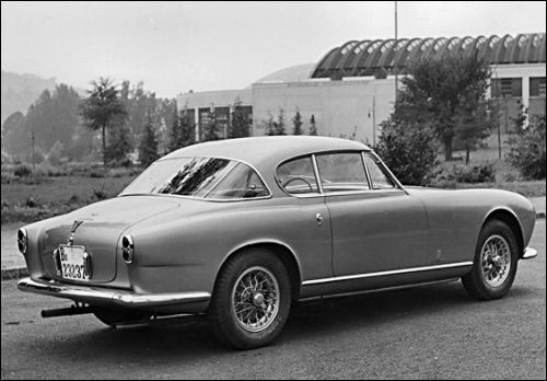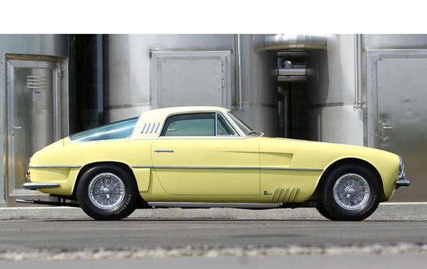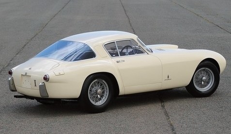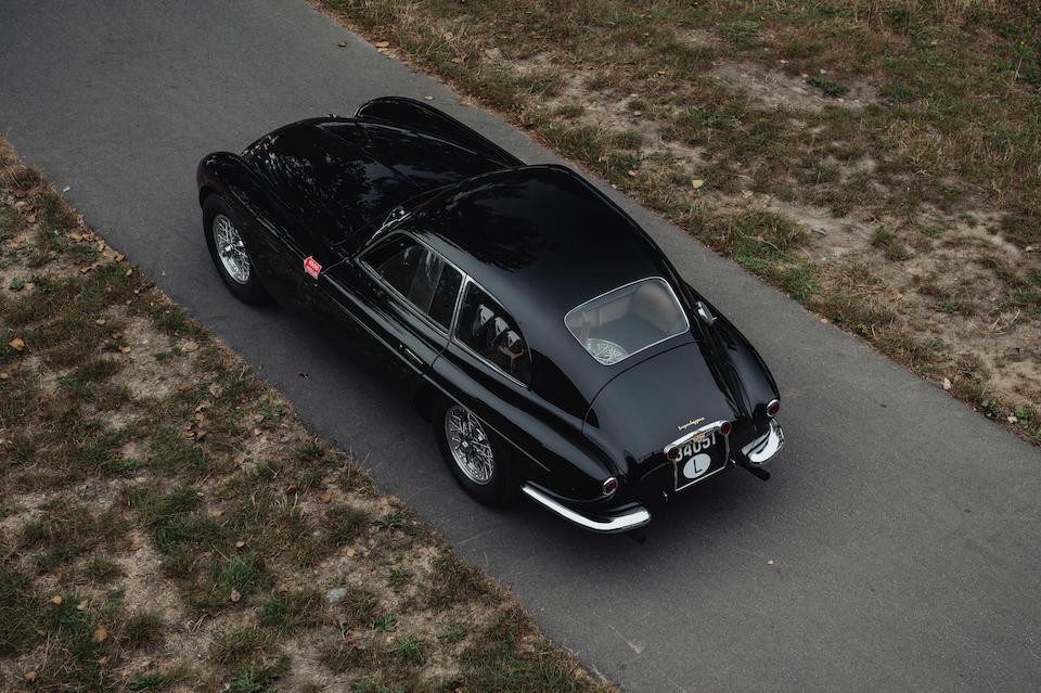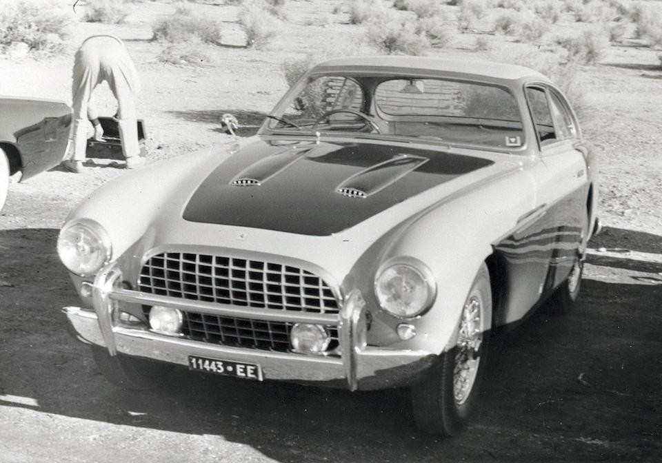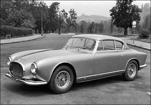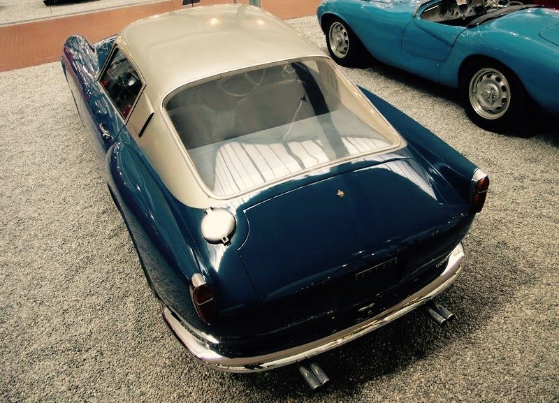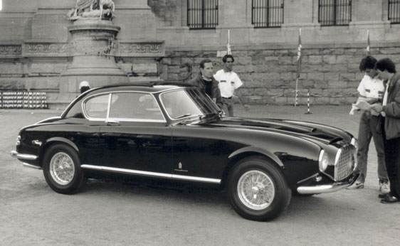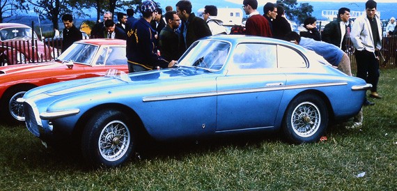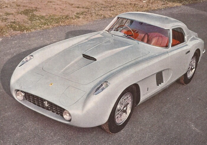 0456 AM : 1954, 375 MM, Coupé par Pinin Farina, caisse unique, « Coupé Bergman » (livrée PF 17/07/1954), phares rétractables, petits ailerons sur le toit, Bleu clair.