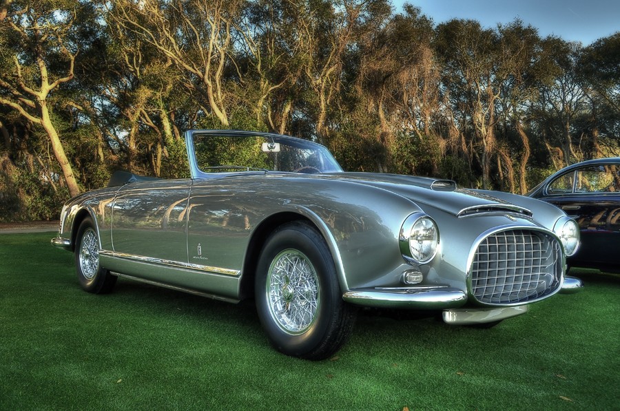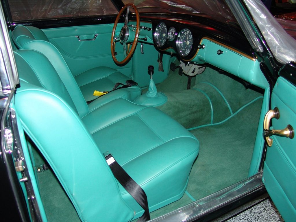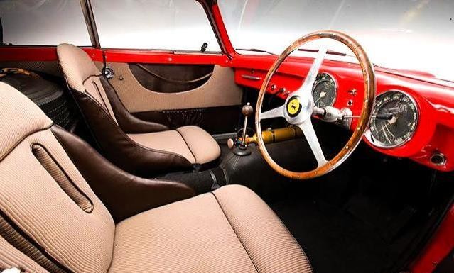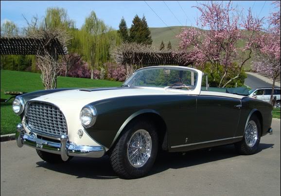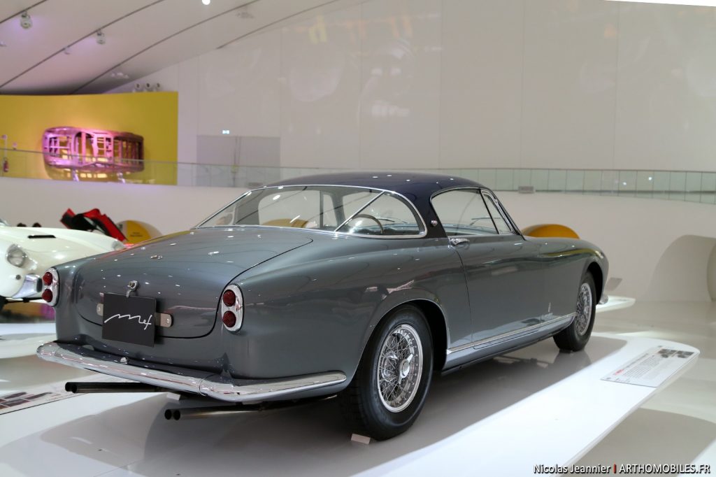 0490 AM : 04/1955, 375 MM, berlinette Pinin Farina (livrée le 10/03/1955), dernière de la série, 2 tons ivoire, toit bleu foncé, cuir naturel.