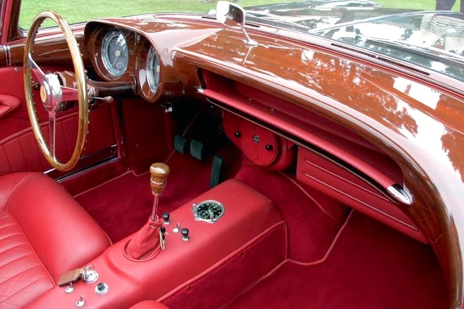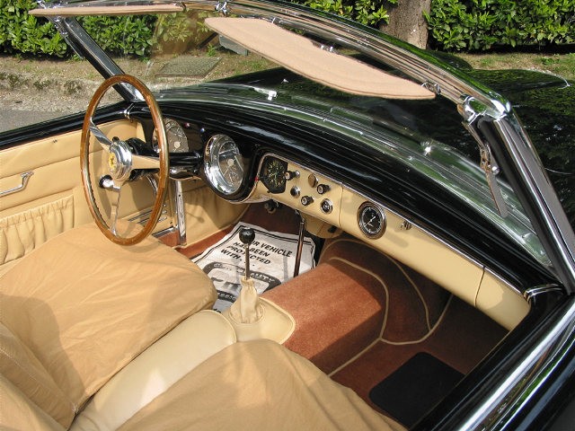 0114 A : 1951, 340 America, Barquette par Touring, moteur n°3A, boîte de vitesses n°39A, pont arrière n°7A, Noire, cuir vert.