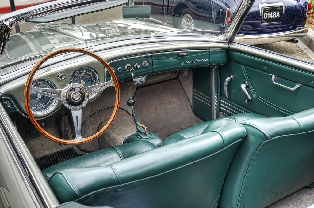 Retourne chez Pininfarina pour modifications: repeinte gris argent métallisé, trappe d’accès au radiateur devant la prise d’air de capot, baguette chromée de toit, nouvelles baguettes chromées de vitres latérales, rétroviseur rectangulaire fixé sur le toit (ovale sur le tableau de bord), vitres descendantes (coulissantes), boule de levier de vitesse en acier (bakélite), boîte à gants, cendrier, goulotte de réservoir fermant à clé, tunnel de transmission avec médaillon de St Christophe, plus de courroies de cuir de fermeture de capot.