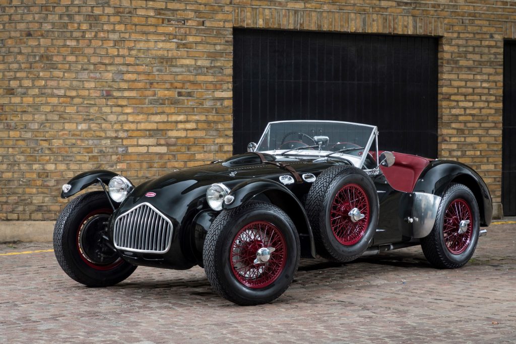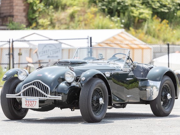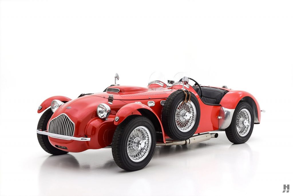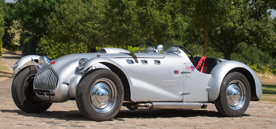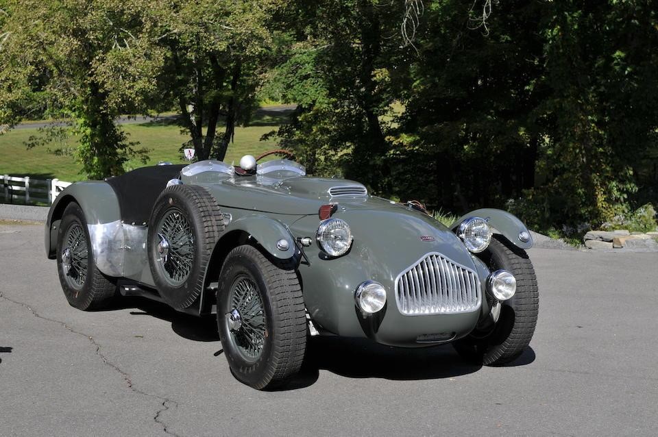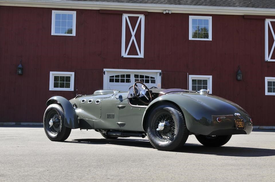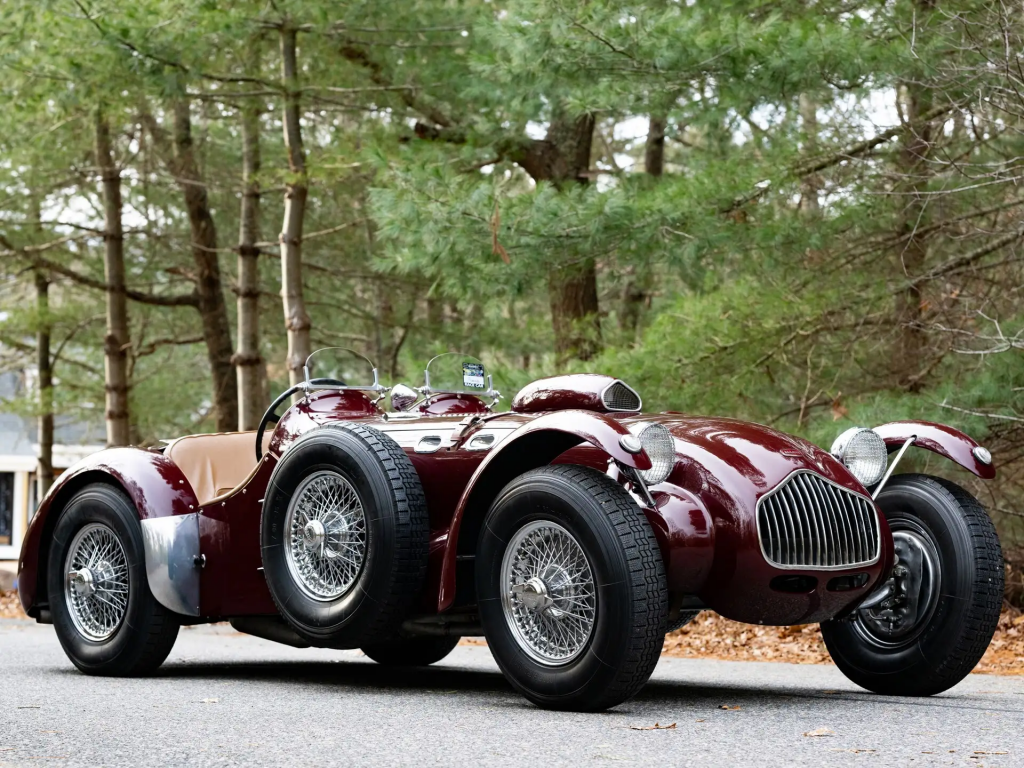 J2X 3209 : 1954, J2X, moteur Cadillac, boîte de vitesses Jaguar, jantes à rayons Crimson, Beige, cuir rouge.
