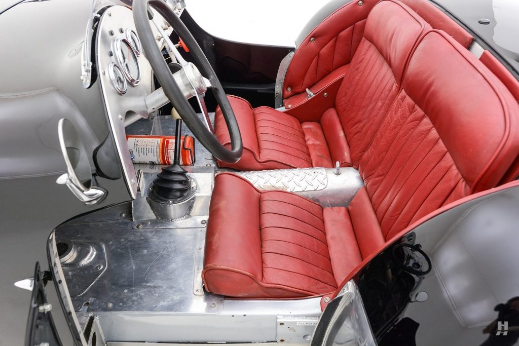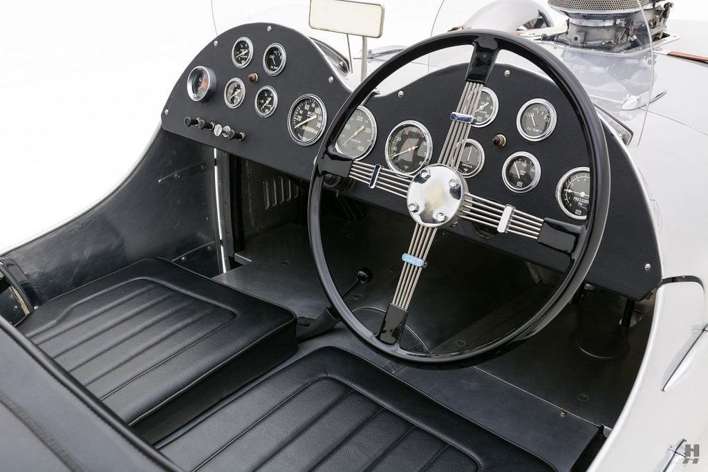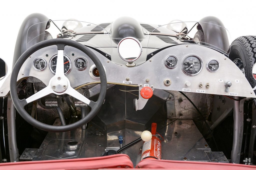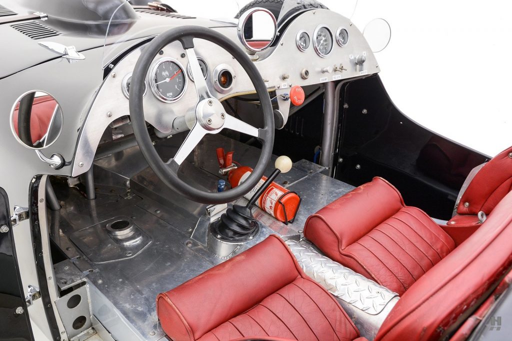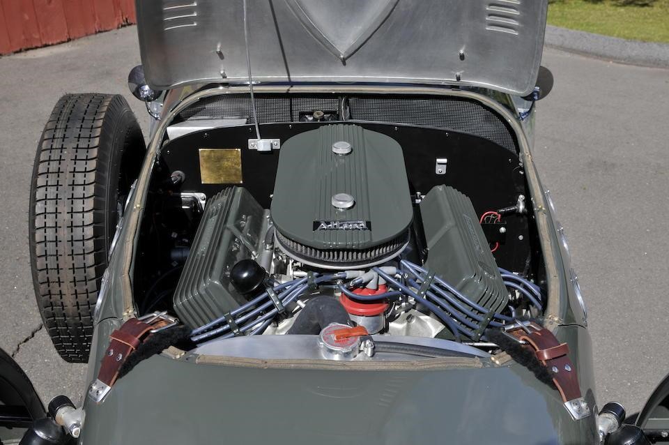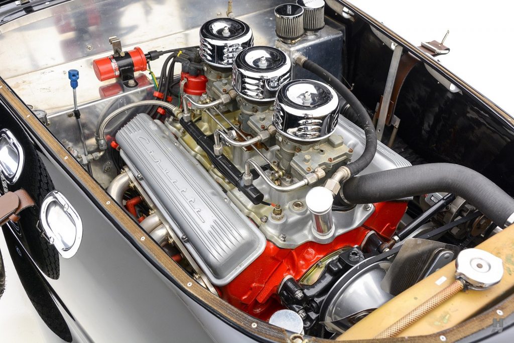 Silver Grey, jantes à rayons à moyeu central Rudge & Whitworth, différentiel autobloquant, dispositif de levage arrière Halibrand, moteur porté à 342 ci, couvre-culasse Hildebrand, 2 carburateurs Carter WCD, boîte de vitesses Muncie Rock Crusher 4 rapports.