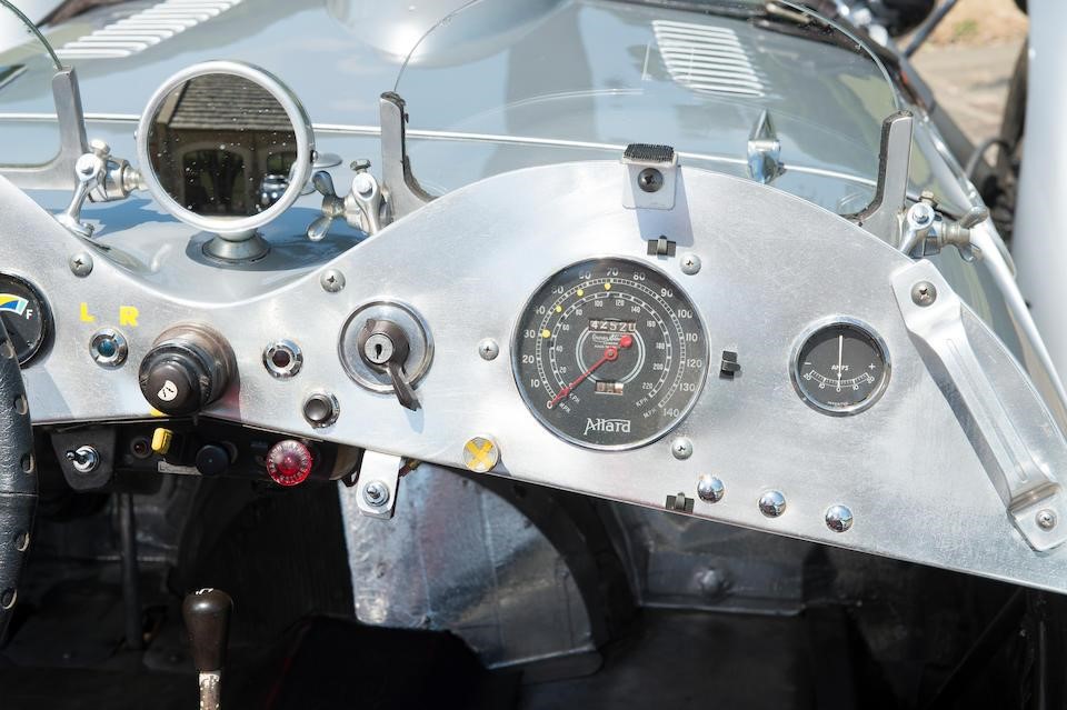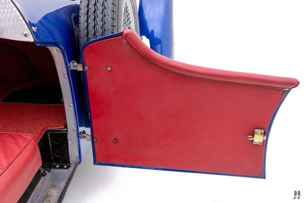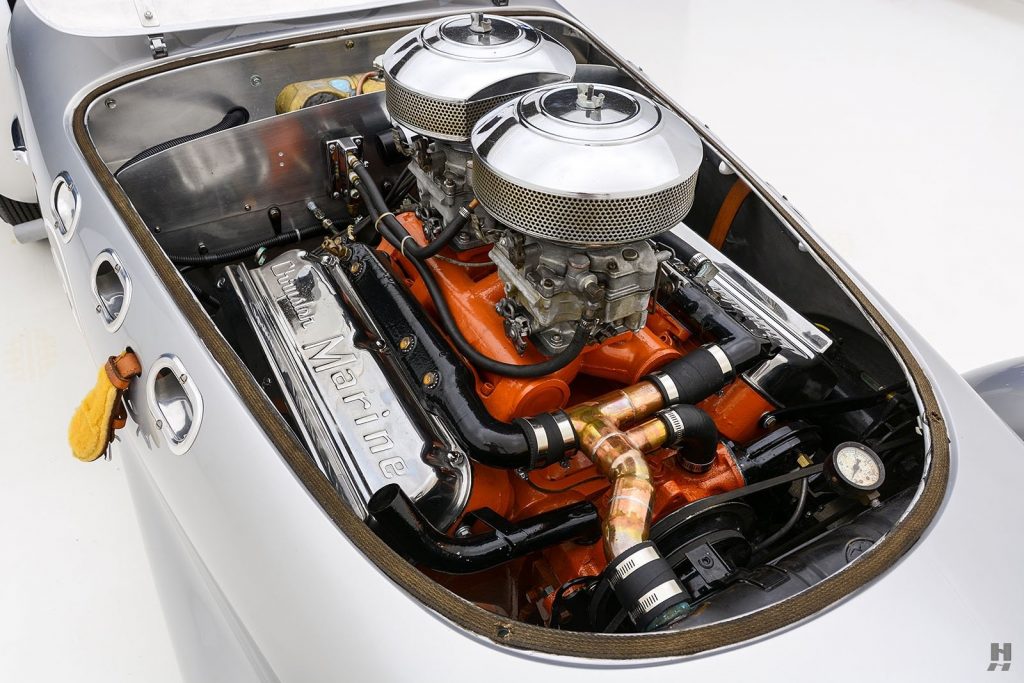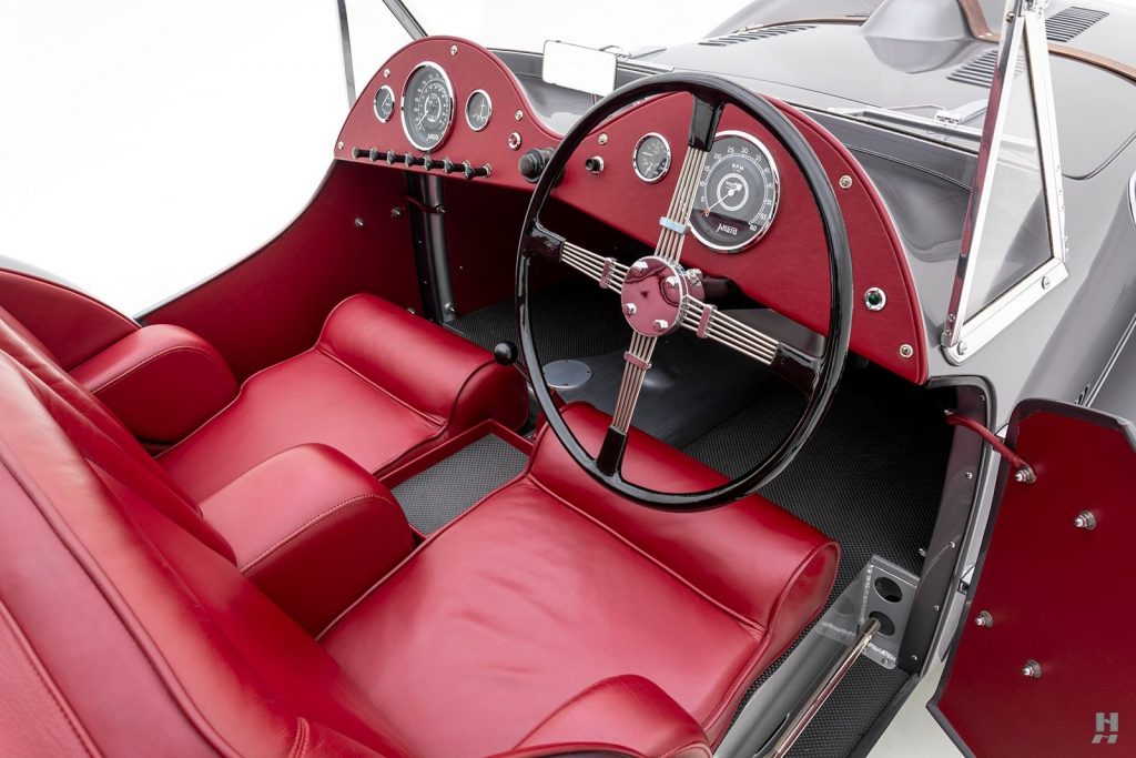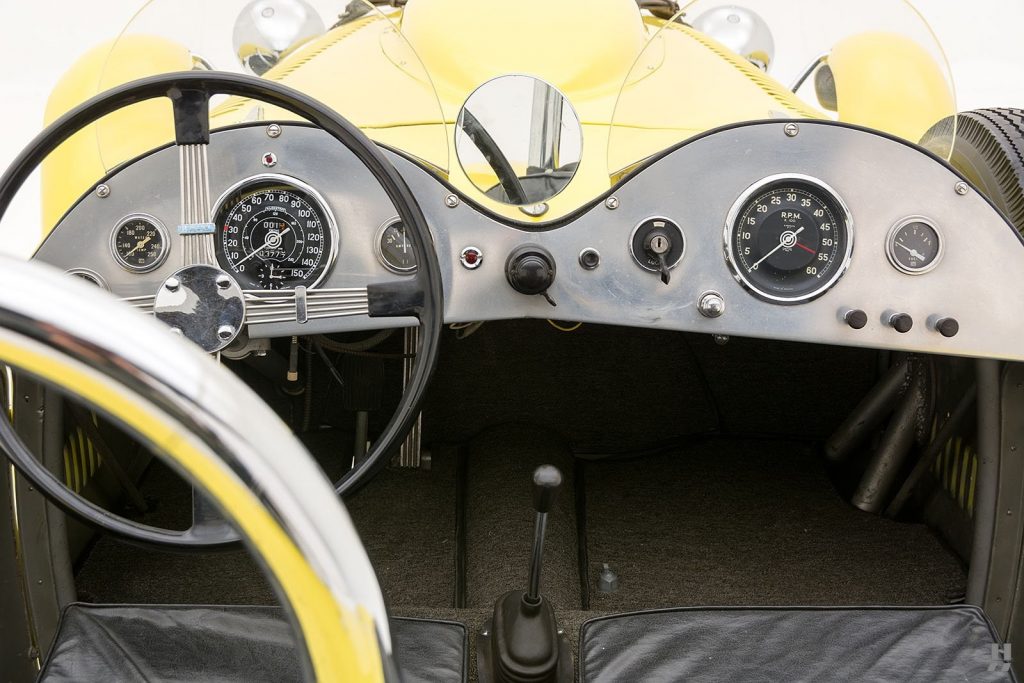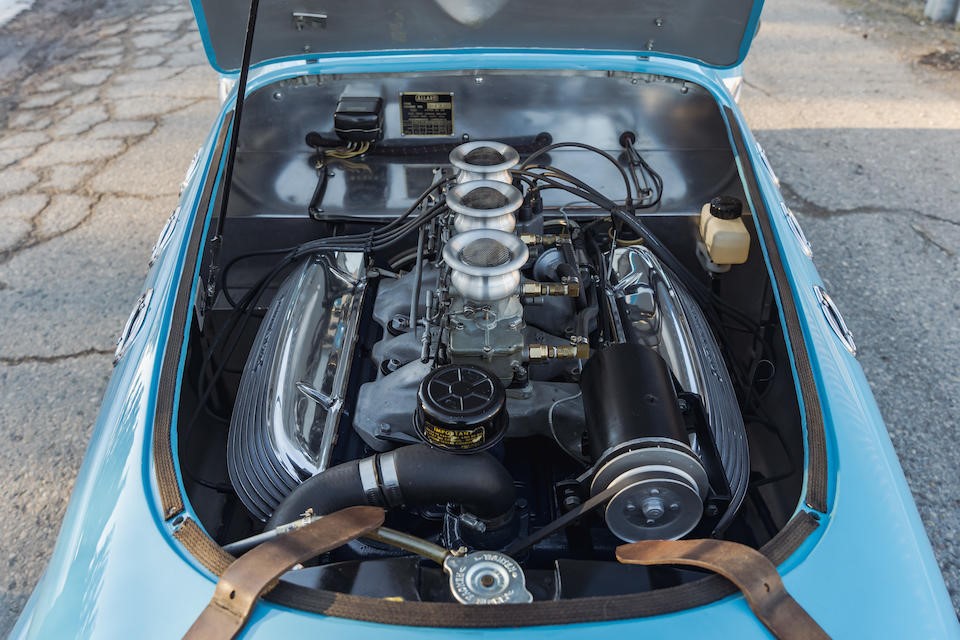 Silver Grey, jantes à rayons à moyeu central Rudge & Whitworth, différentiel autobloquant, dispositif de levage arrière Halibrand, moteur porté à 342 ci, couvre-culasse Hildebrand, 2 carburateurs Carter WCD, boîte de vitesses Muncie Rock Crusher 4 rapports.