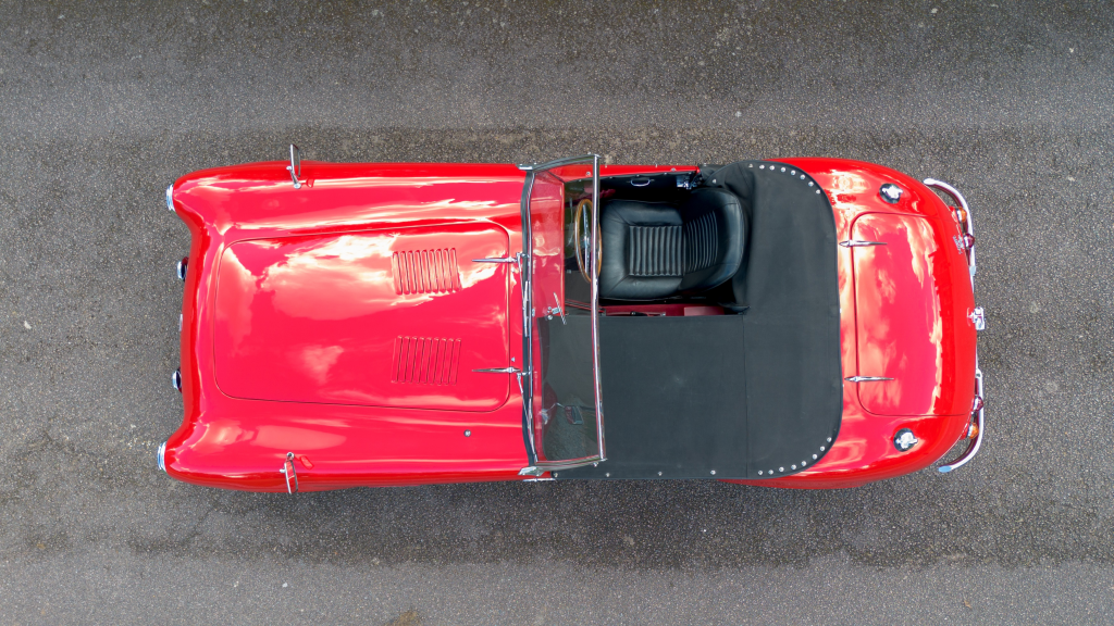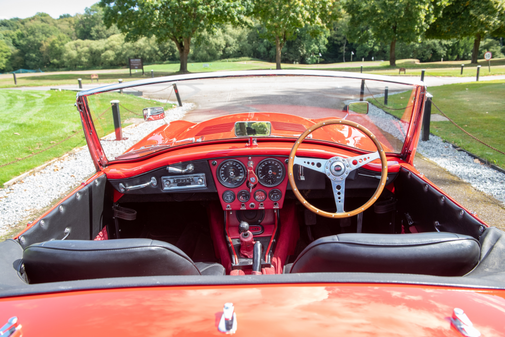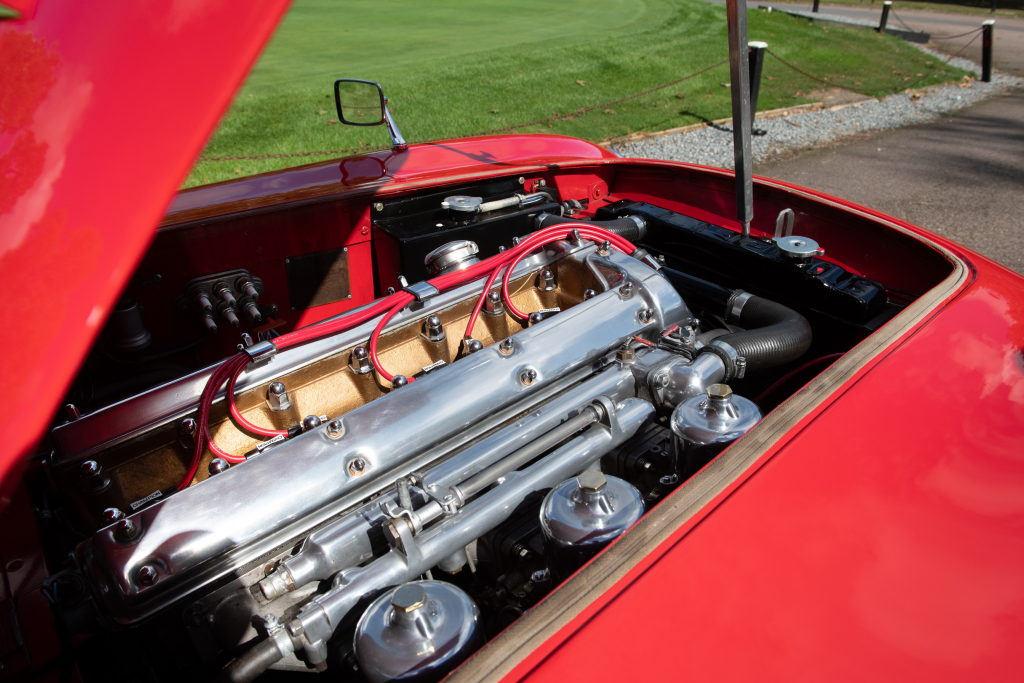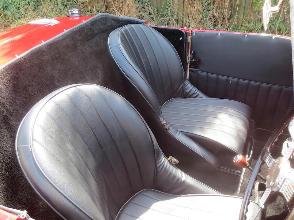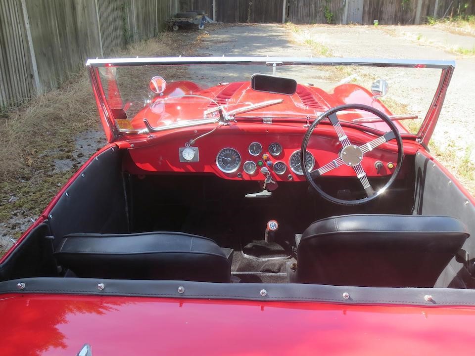 21Z-5169 : 1957, Palm Beach MK1, moteur 21P2498X expérimental de pré-production prévu pour une Ford Zéphyr devant participer au Rallye de Monte-Carlo, 3 carburateurs SU avec tubulure d’admission adaptée, échappement course, sièges baquets, gros réservoir, chronomètre et lecteur de carte passager, Rouge, cuir noir.
