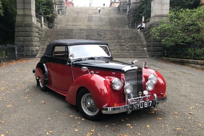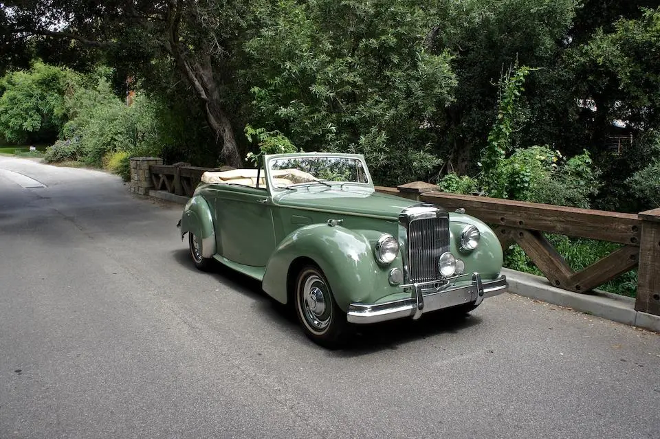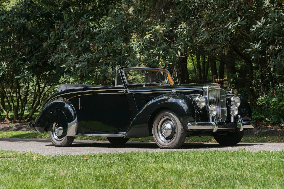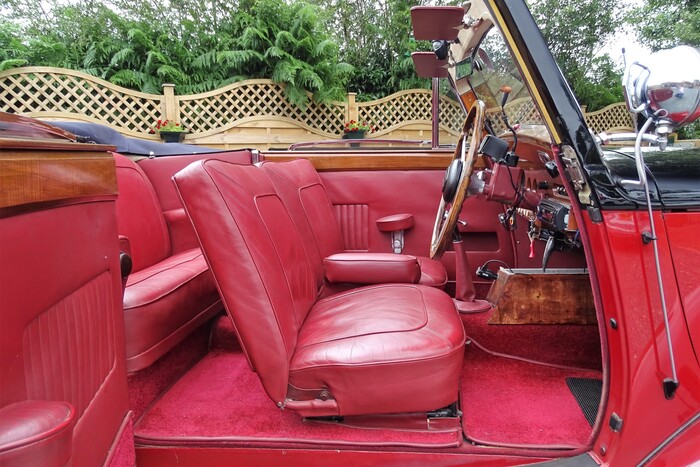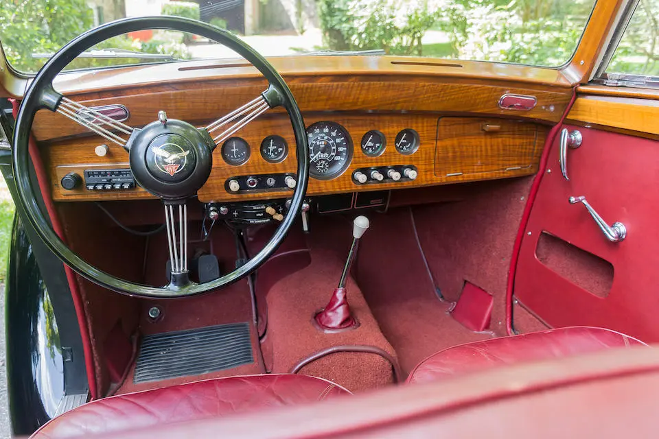 24501 : 04/02/1951, TA 21, Drophead Coupé par Tickford, phares Lucas, pneus Dunlop, lave-glace Trico, ventilateurs supplémentaires, montants de pare-brise plaqués boiseries, pares-soleil, compteur en km/h.