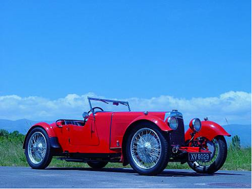 10/1934, Salon de Londres, Olympia (G-B) : Présentation de l’Ulster, réplique des 3 voitures victorieuses du Tourist Trophy : 2 carburateurs SU HV3, allumage par magnéto, refroidissement par 2 circuits d’eau alimentant séparément bloc et culasse. Circulation forcée dans le bloc par pompe et principe du thermosiphon pour la culasse, radiateur commun. Arbre à cames Laystall, soupapes et ressorts de soupapes redimensionnés. Pistons à tête bombée, culasse rabotée. Alimentation par 2 carburateurs SU 1 ½, avec 2 pompes à essence, réservoir 15 gallon positionné entre les sièges et le pont arrière. Taux de compression 8,5 :1, 80 chevaux à 5250 tours.