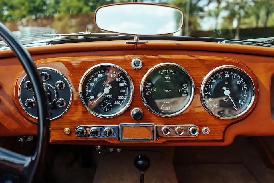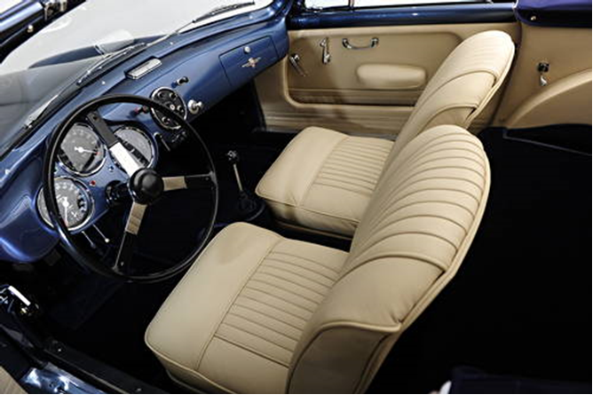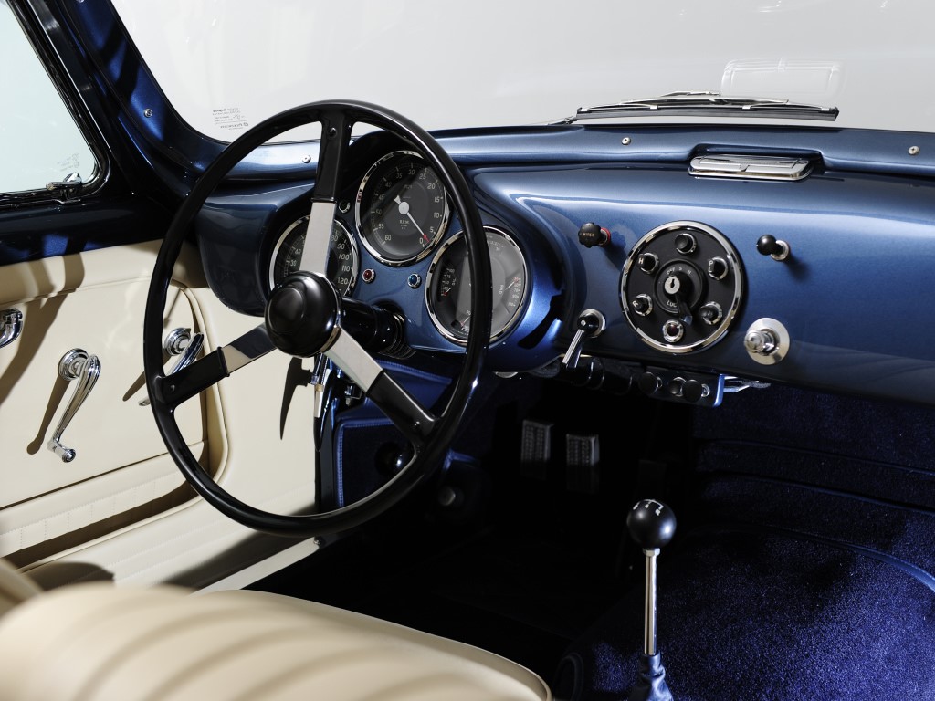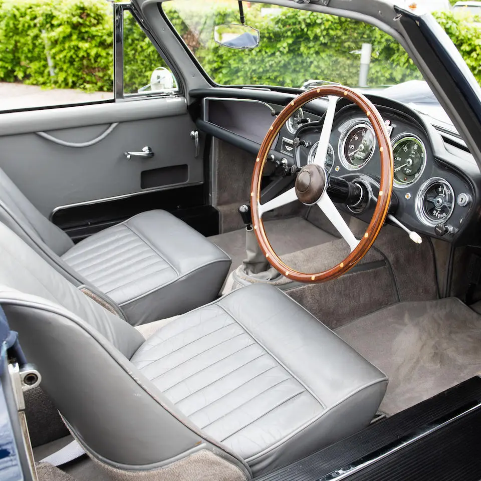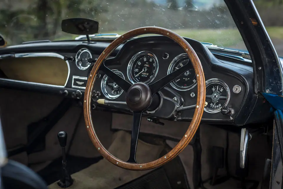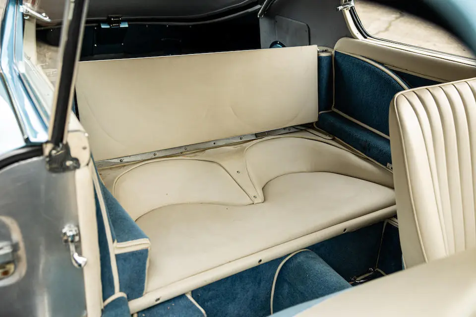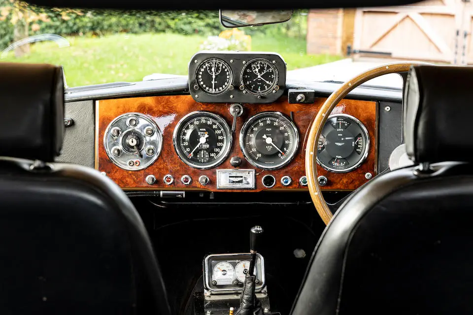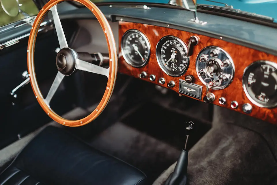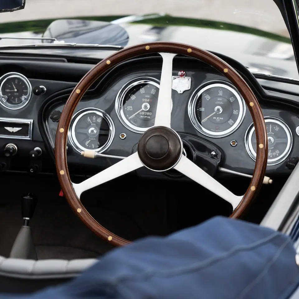 AM300/3/1490 : 1958, DB2 MK3 Drophead Coupé, 2 carburateurs SU, overdrive Laycock de Normanville, jantes à rayons chromés à fixation centrale et papillon à 2 oreilles, rétroviseurs d’ailes chromés, volant 3 branches, instrumentation Smiths, radio, Pacific Blue, cuir rouge.