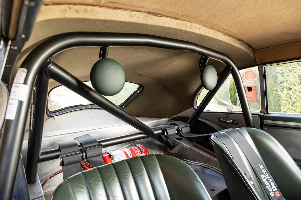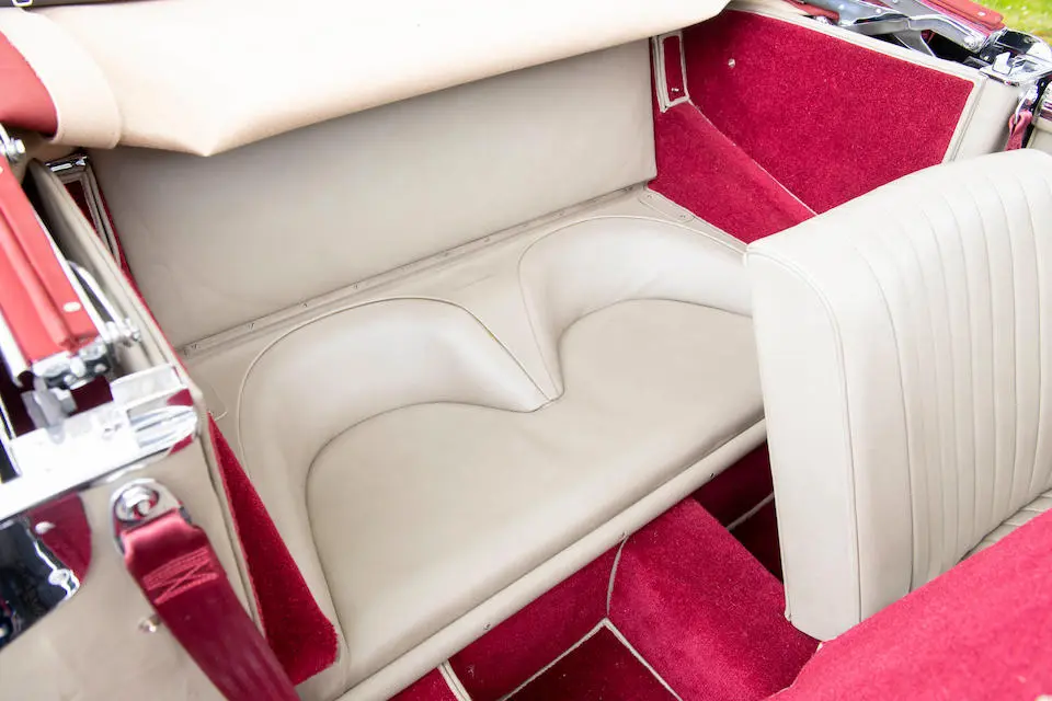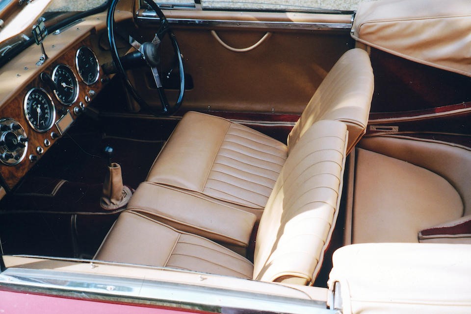 AM 300/3/1696 : 1958, MK3, moteur DBA/1297, Scotch Pine green, cuir Connolly rouge, moquettes noires, overdrive, disques avant, tambours Alfin arrières, servofrein, radiateur d’huile, double échappement, chauffage Smiths plus puissant, 2 carburateurs SU HIV6, rapport de pont 3,77 :1, 2 antibrouillards.