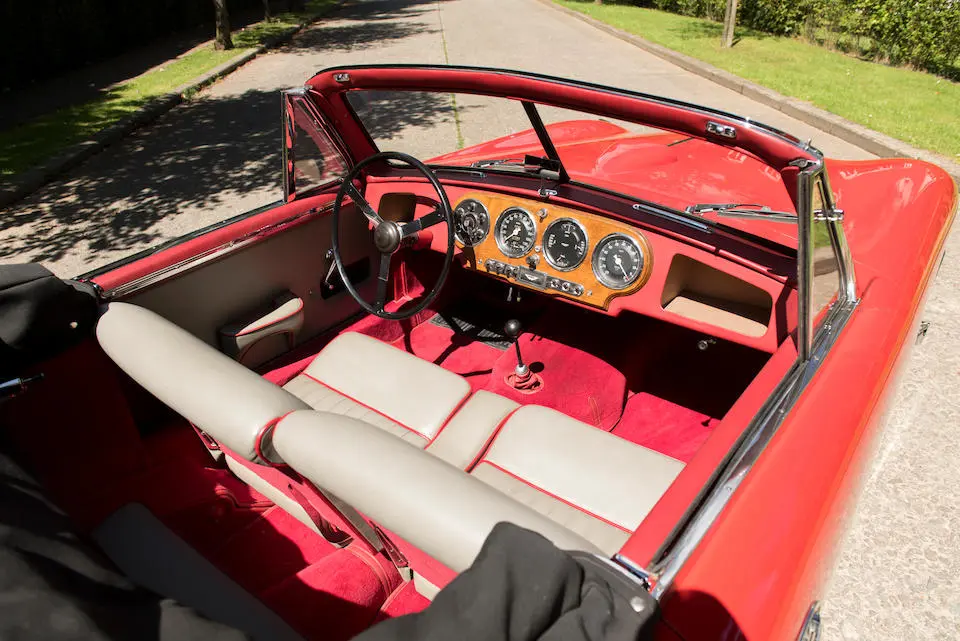 AM 300/3/1680 : 1959, DB 2 MK3, Drophead Coupé, rouge, cuir naturel, capote beige.