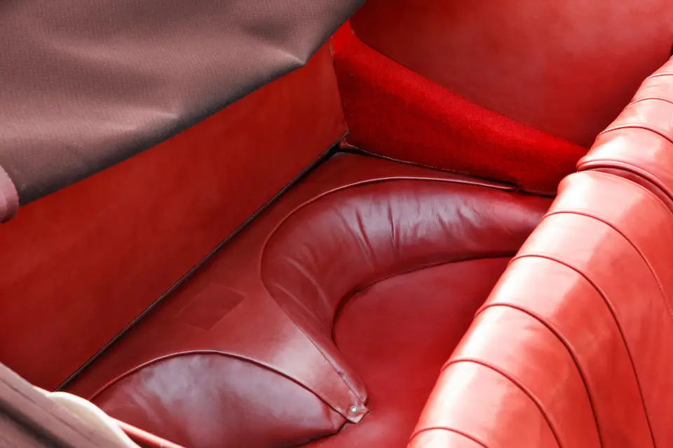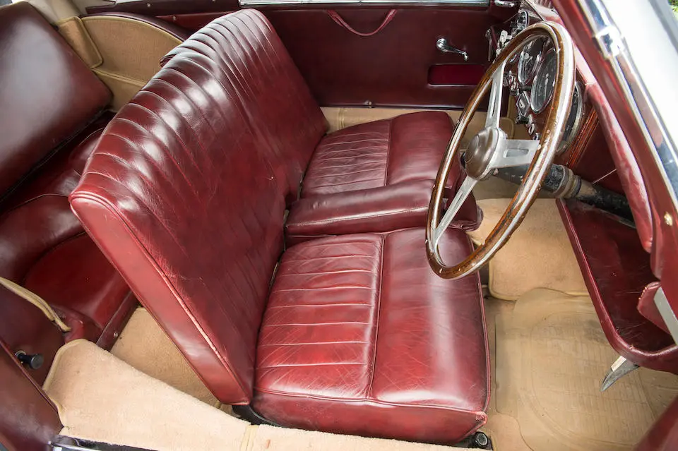 LML/50/19 : 1950, DB 2 Vantage (1ère Vantage), CAD, calandre en 3 parties, moteur LB6V/50/240, soupapes compétition, distributeur, livrée avec 3 roues de secours avec pneus et 2 carburateurs de rechange, Rouge, cuir rouille.
