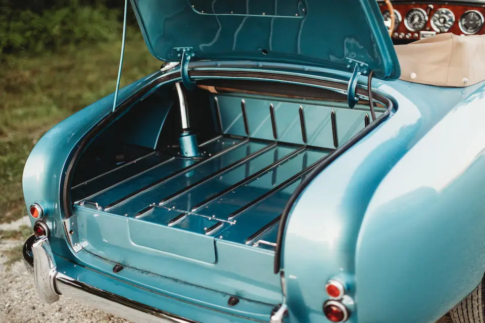 LML/50/26 : 1950, DB2 Drophead, 2e de la série, option Vantage (1ère), calandre en 1 partie mais ouïes d’ailes, Jubilee Blue, cuir noir.