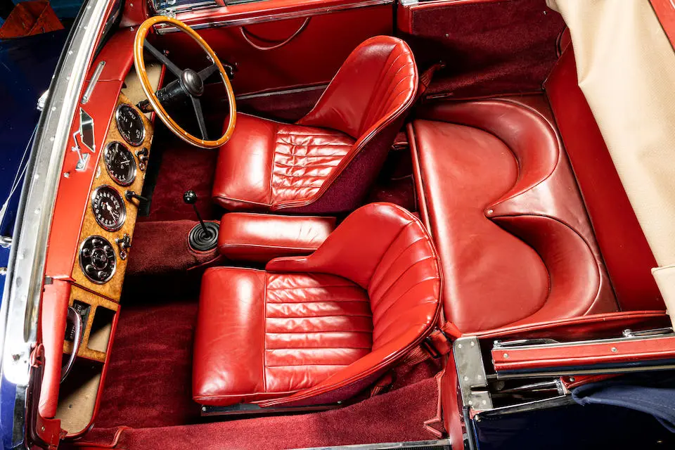 Recarrossée en berlinette dans le style Ferrari 250 GT par Serra (ESP), instrumentation de DB4,