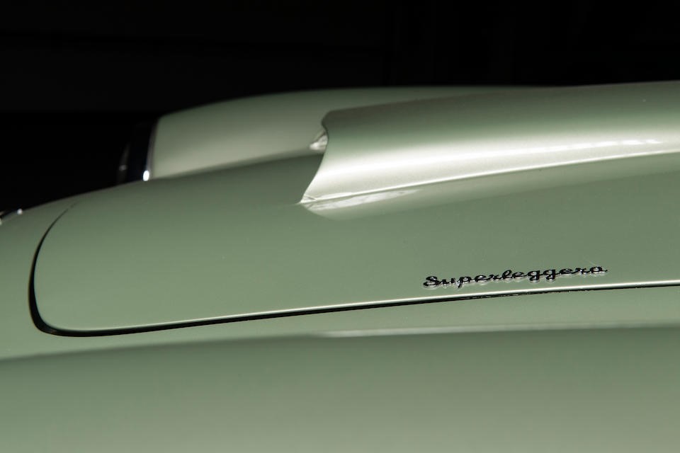 Carrosserie en aluminium utilisant la technique Touring Superleggera constituée d’un fin treillis de tubes d’acier avec panneaux d’aluminium rapportés par assemblage manuel.