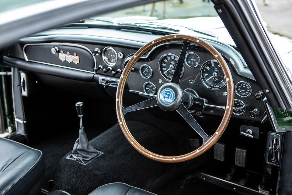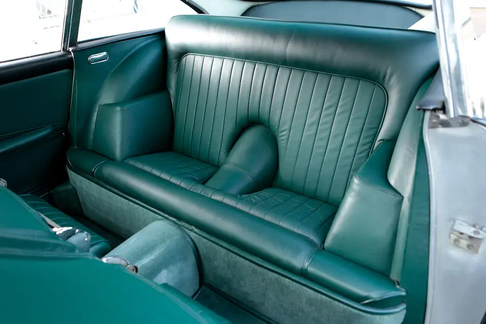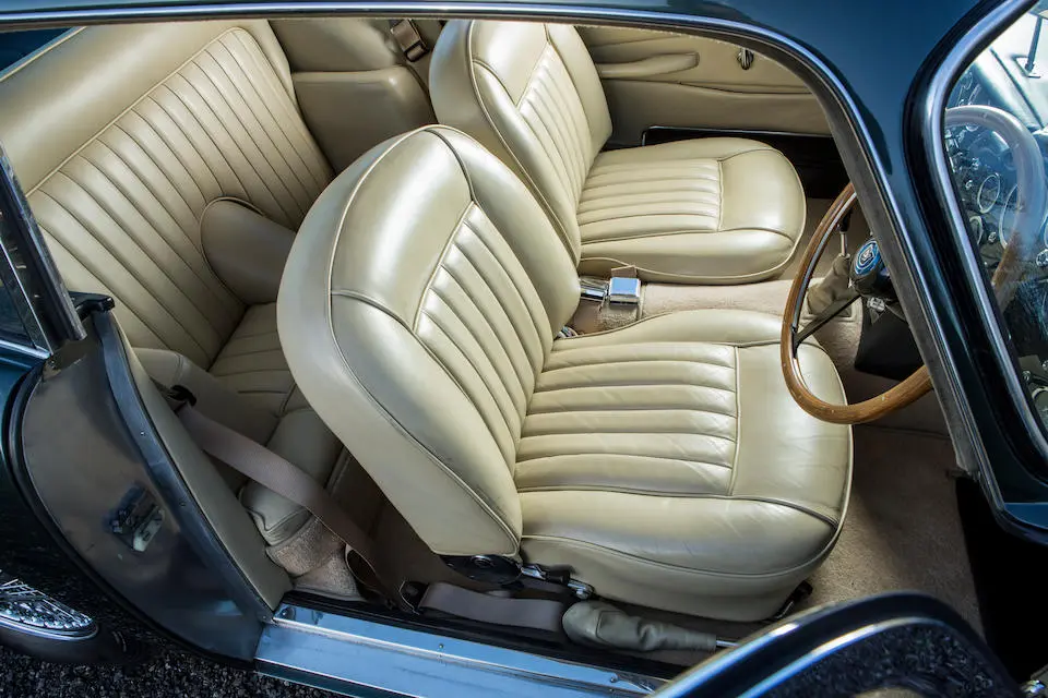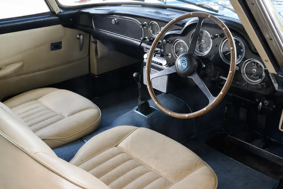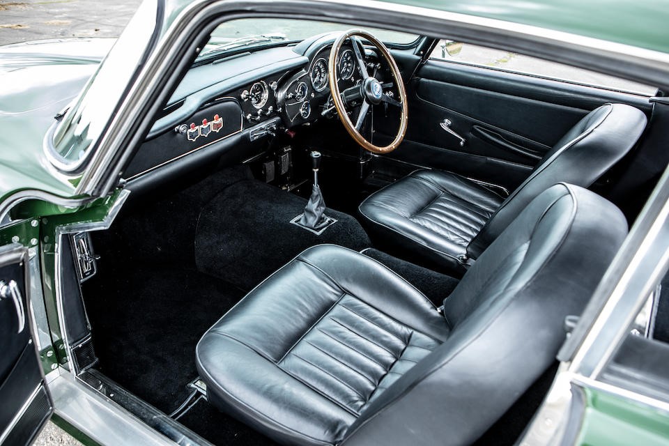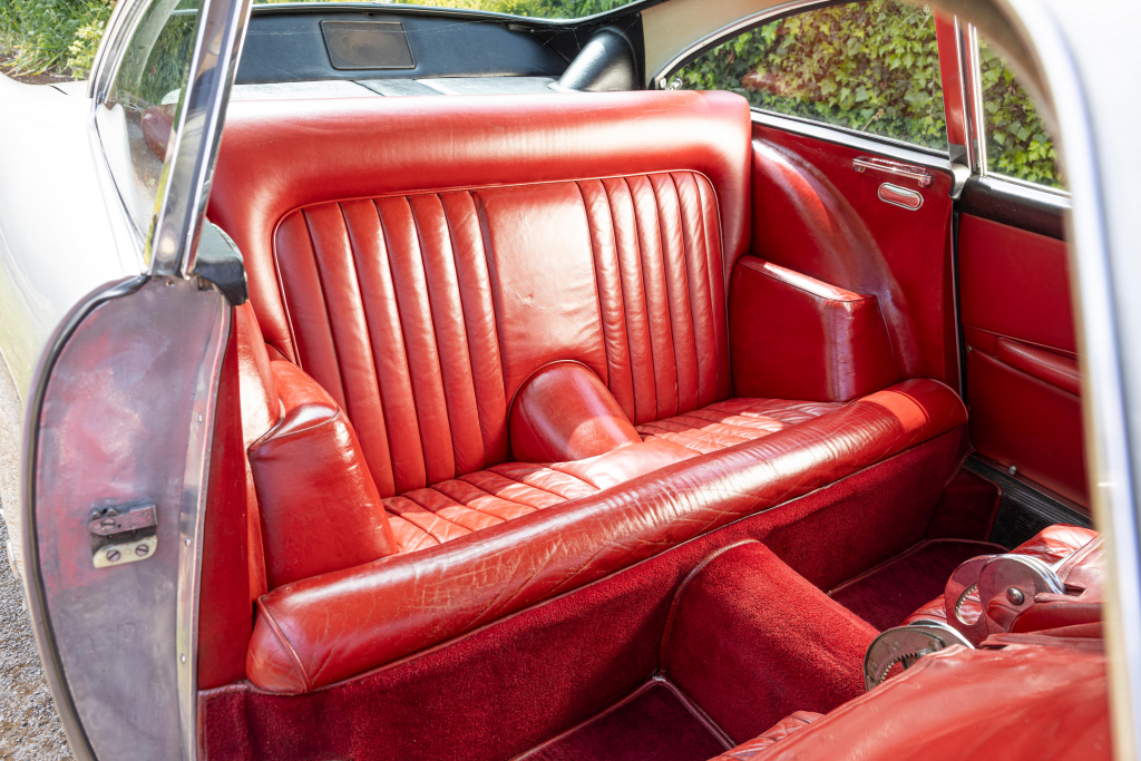 DB4/0965/L : 11/05/1962, DB4 Série 4 SS, CAG, moteur 370/992/SS, 1/97 avec moteur SS, radiateur d’huile, différentiel autobloquant avec rapport de pont 3,77 :1, overdrive, amortisseurs réglables Armstrong Selectaride, jantes à rayons chromés à fixation centrale, pneus Dunlop RS5, vitres à commande électrique, tableau de bord de DB4GT avec instrumentation Smiths, Caribbean Pearl, cuir noir.