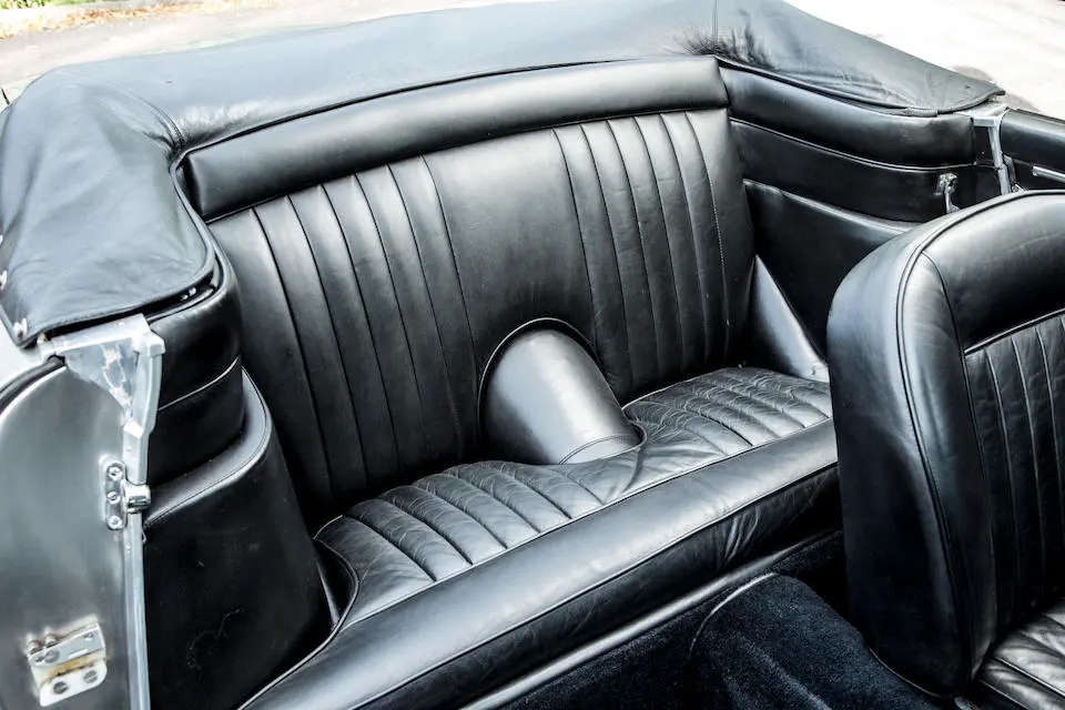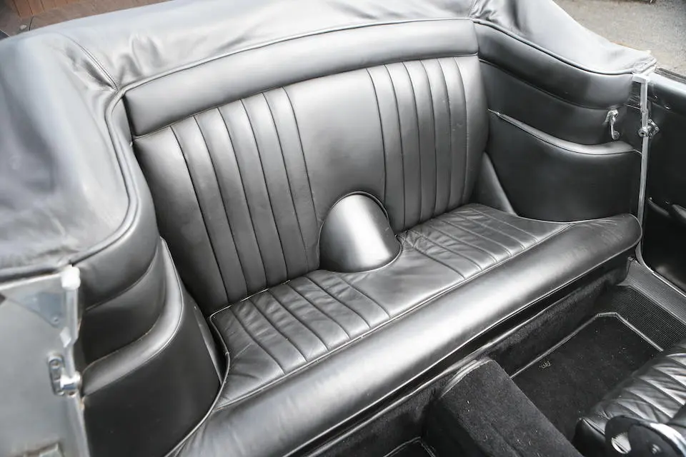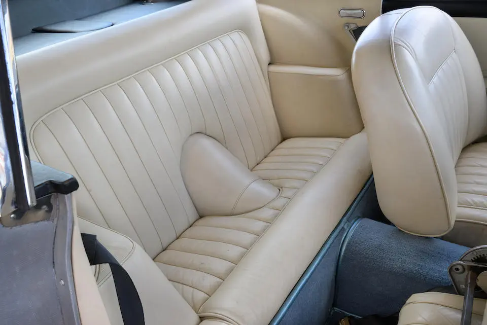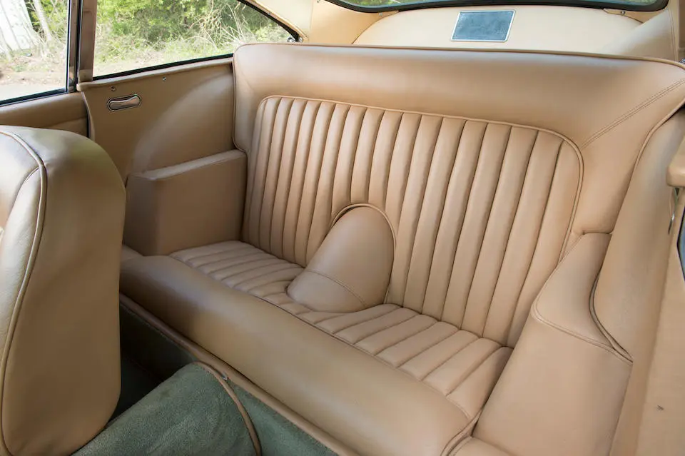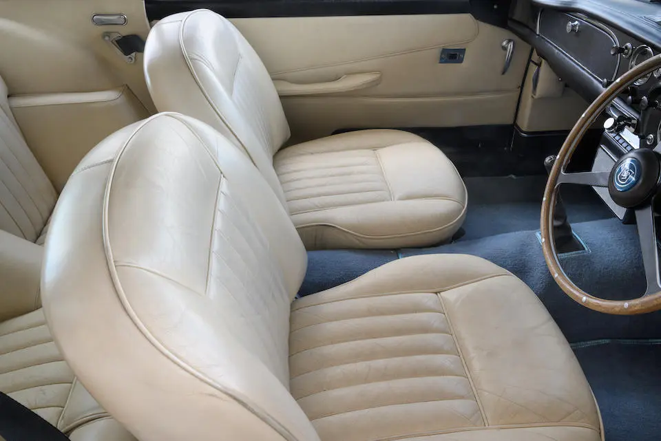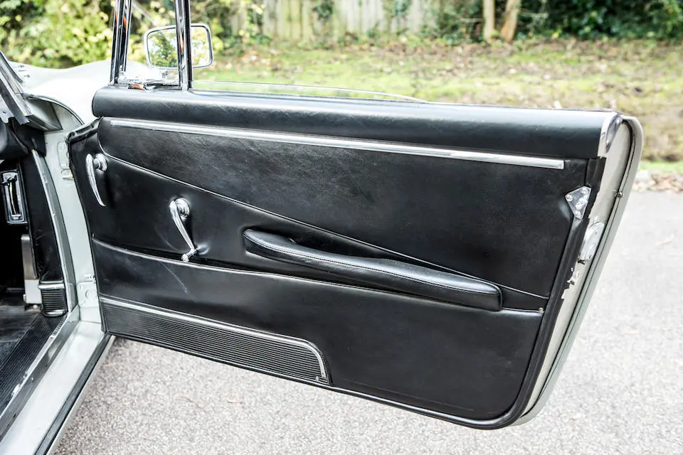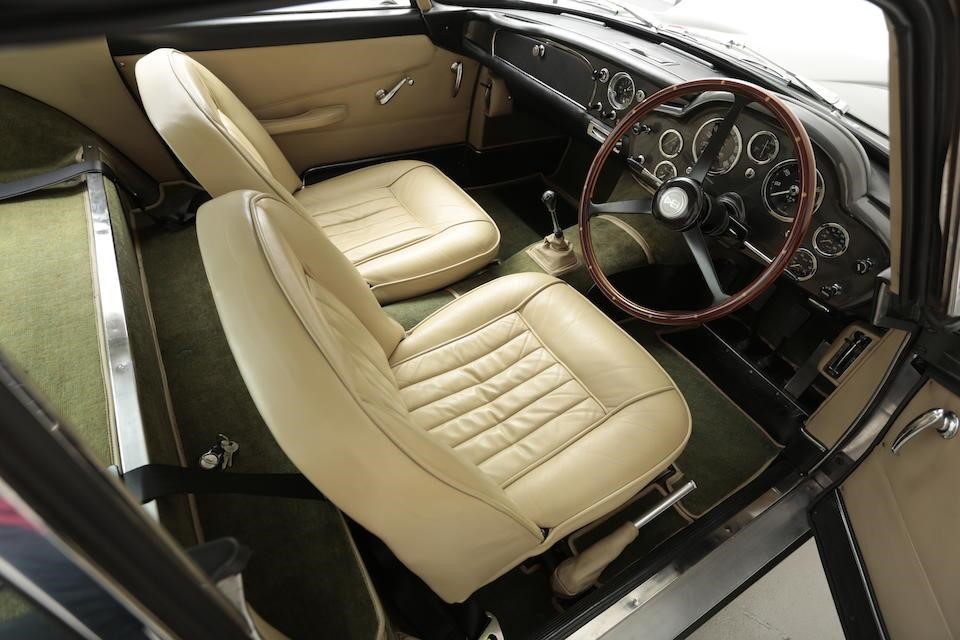 DB4/0965/L : 11/05/1962, DB4 Série 4 SS, CAG, moteur 370/992/SS, 1/97 avec moteur SS, radiateur d’huile, différentiel autobloquant avec rapport de pont 3,77 :1, overdrive, amortisseurs réglables Armstrong Selectaride, jantes à rayons chromés à fixation centrale, pneus Dunlop RS5, vitres à commande électrique, tableau de bord de DB4GT avec instrumentation Smiths, Caribbean Pearl, cuir noir.