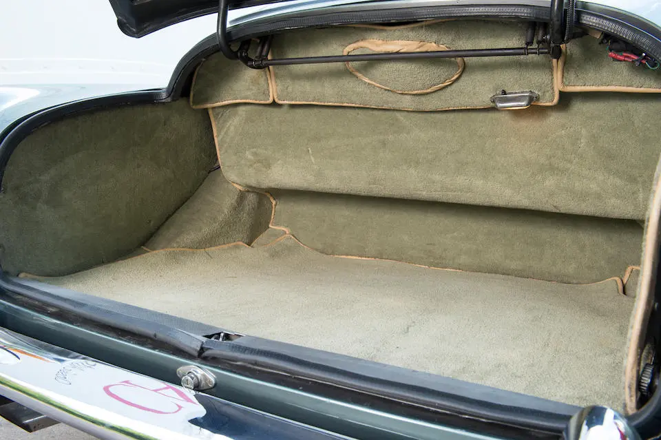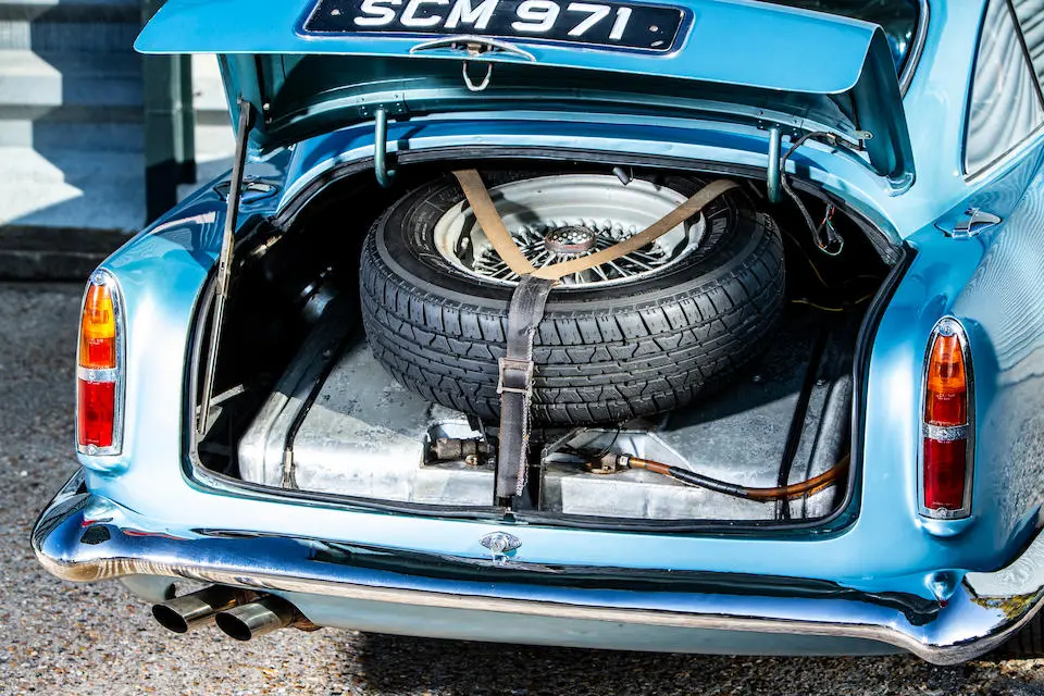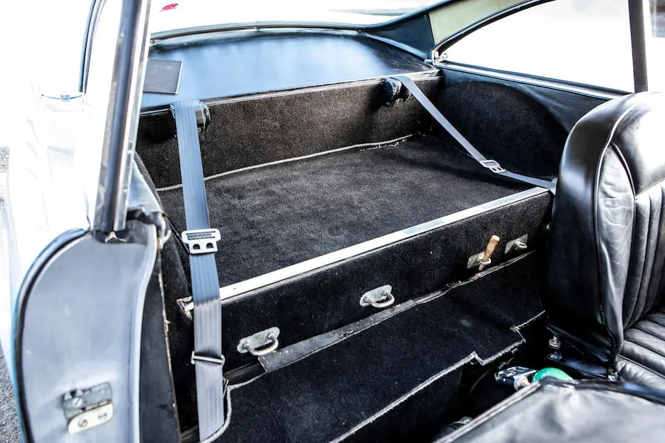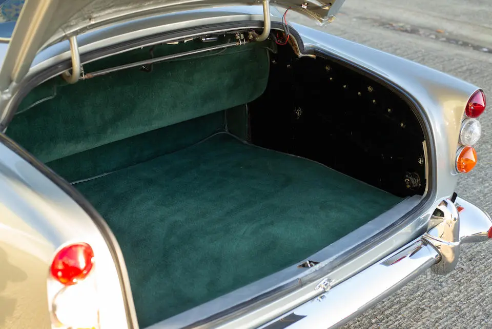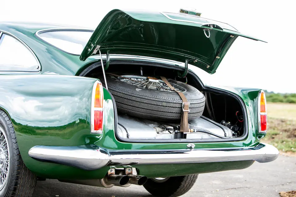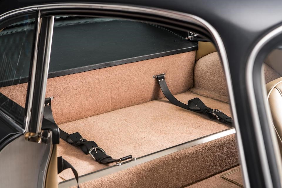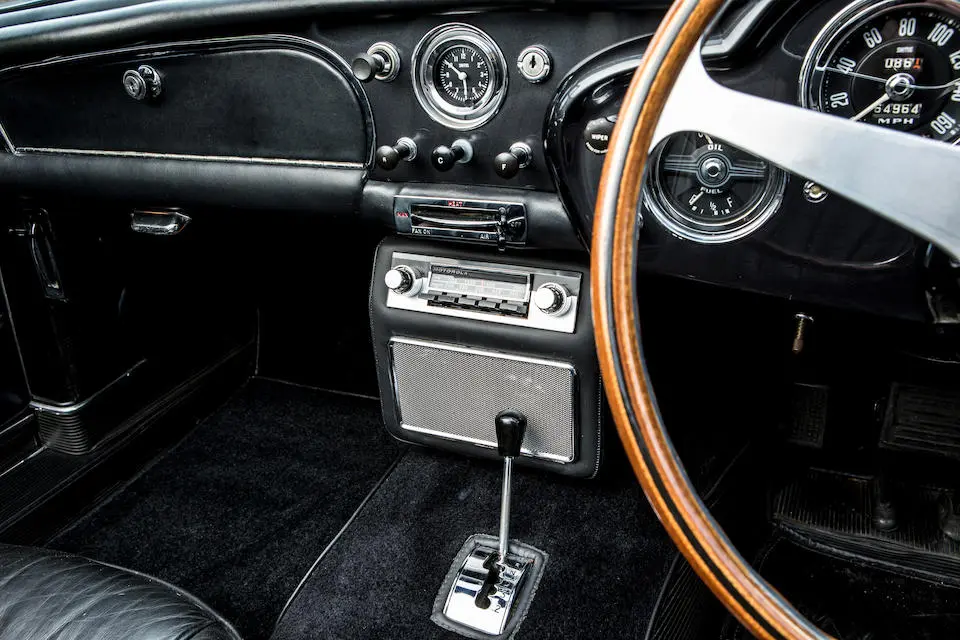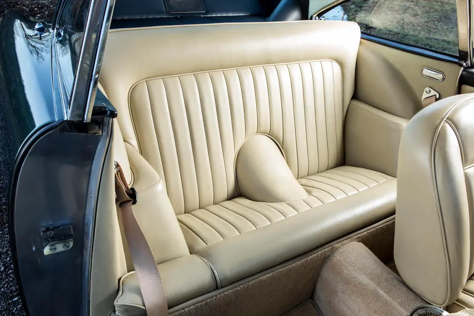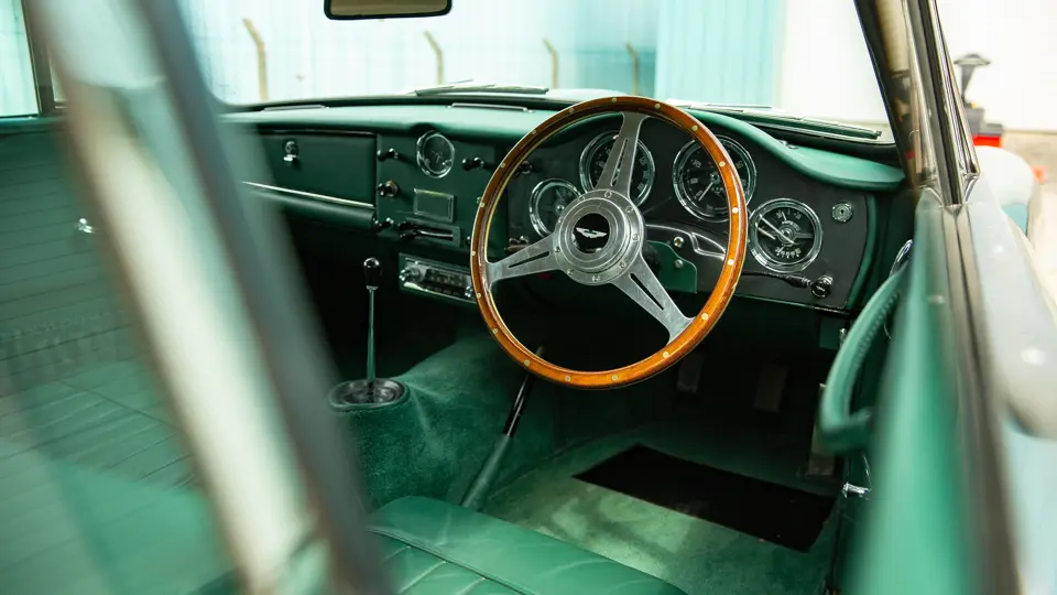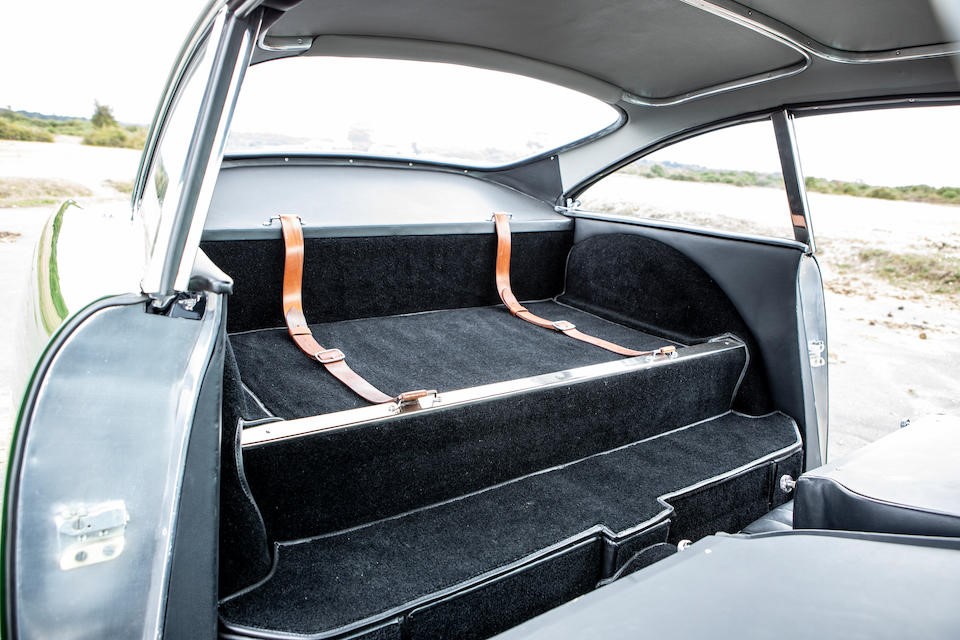 Boîte de vitesses 4 rapports David Brown, coupe-circuit sur la batterie derrière les vitres de custode arrières, Aston Martin Racing Green.