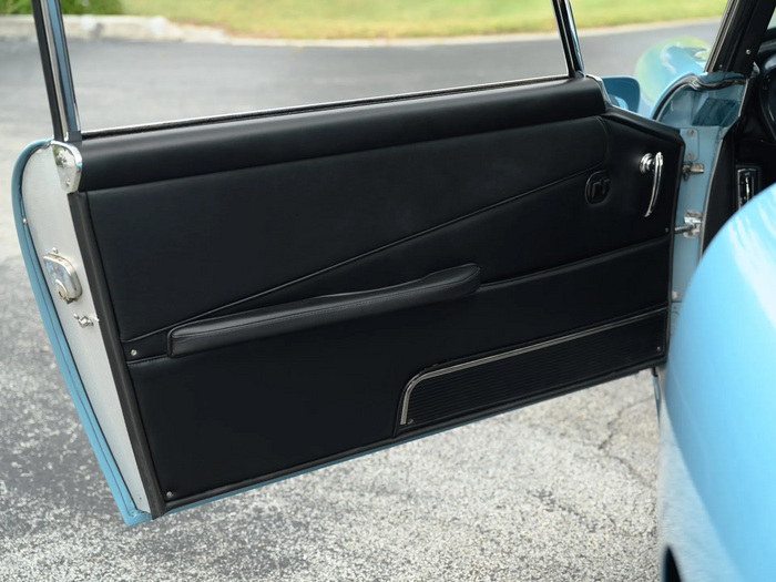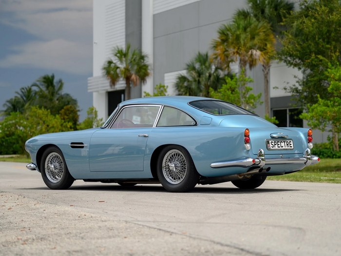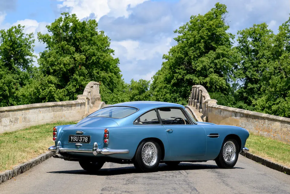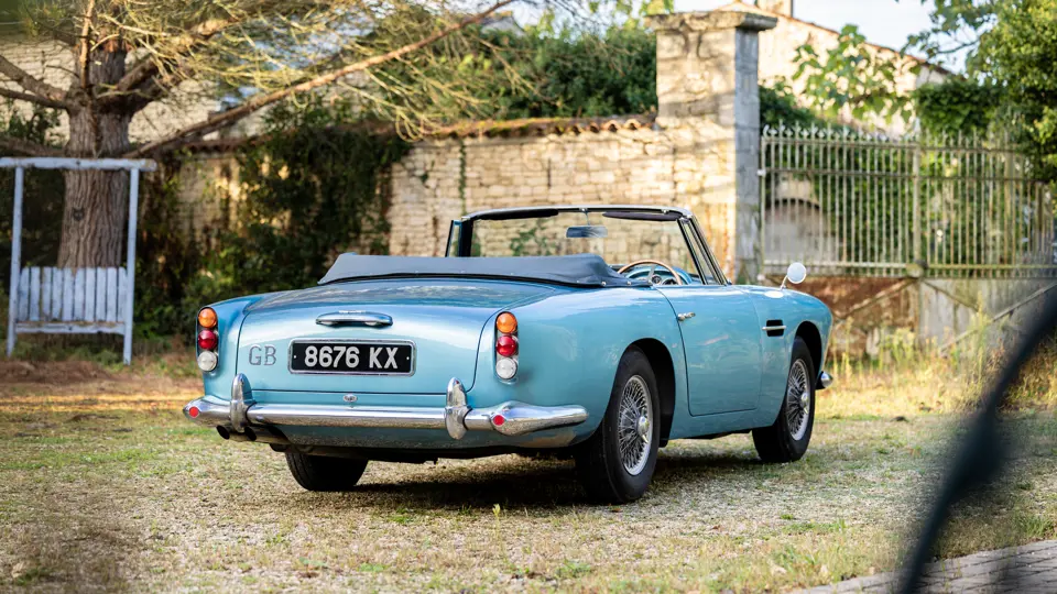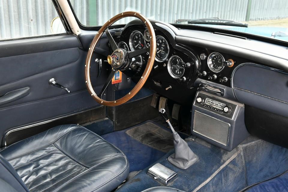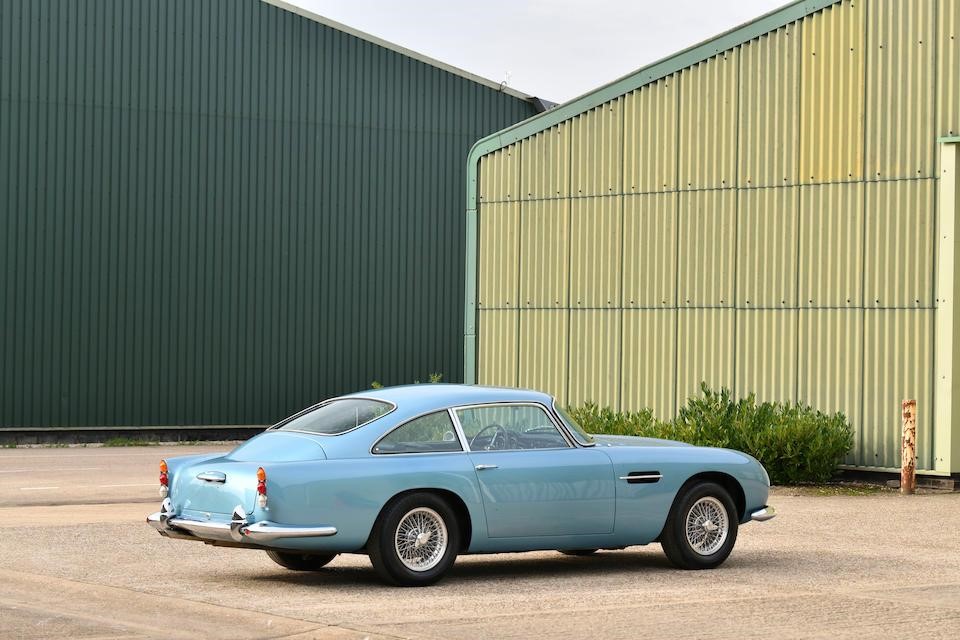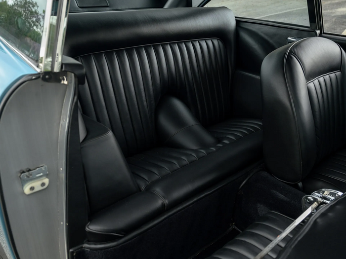 DB4/646/R : 1961, DB4 Série III Sports Saloon, moteur 370/654, boîte de vitesses manuelle avec overdrive, radiateur d’huile, phares antibrouillard Marchal, répétiteurs de clignotants sur les ailes, jantes à rayons, vitres électriques, dégivrage lunette arrière, manomètre température d’huile, soufflets de rangement dans les dossiers de sièges, Caribbean Pearl, cuir bleu foncé.