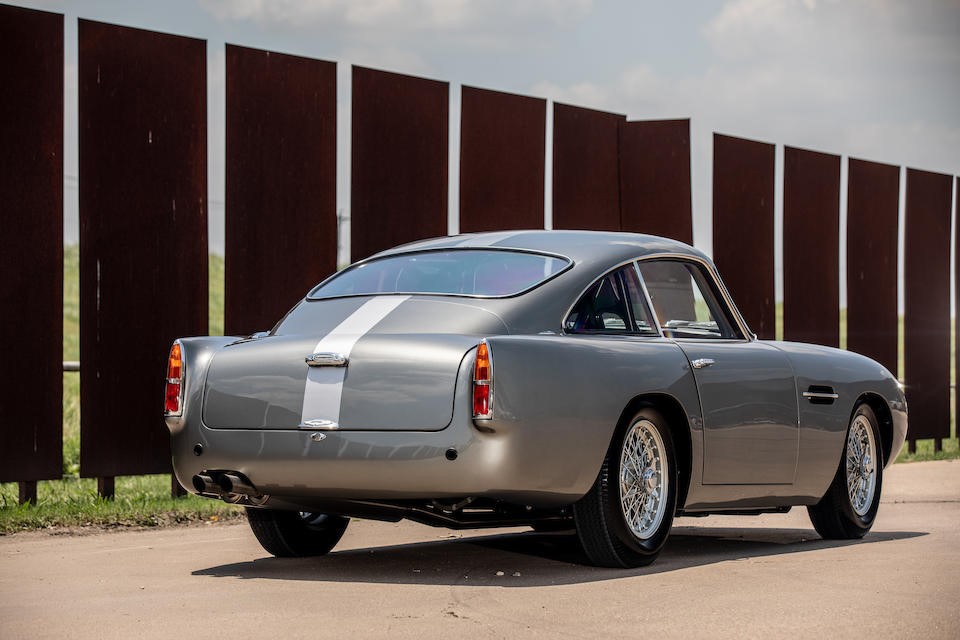 DB4GT/0205/L : 2017, DB4 GT Continuation, 1/25, direction assistée électrique, chauffage, jantes et roue de secours à rayons, phares à iode, appuie-tête avec logo Aston, Moonbeam Silver, bande blanche, cuir rouge.