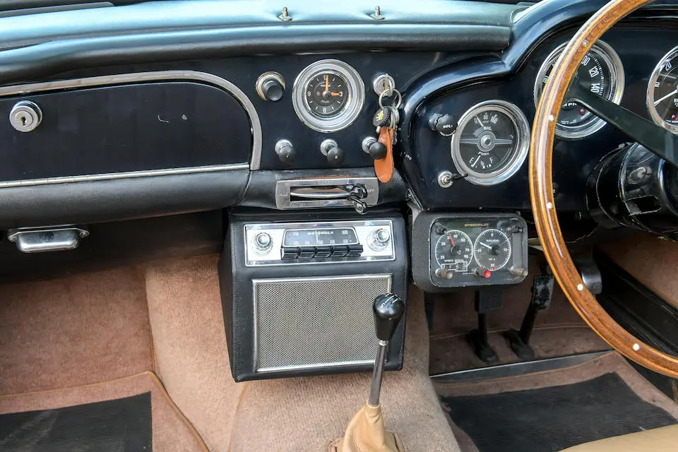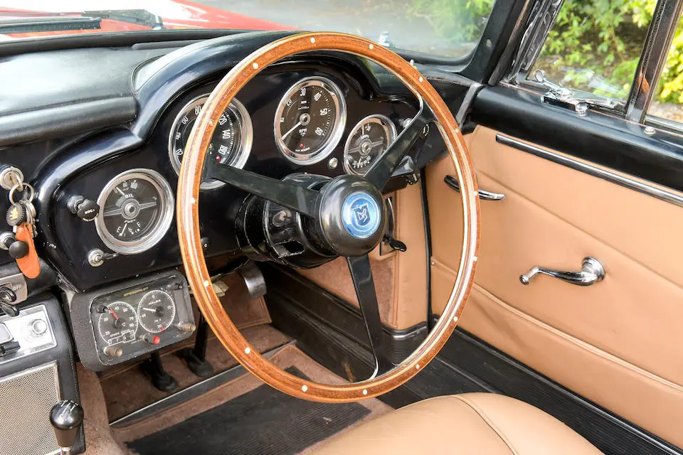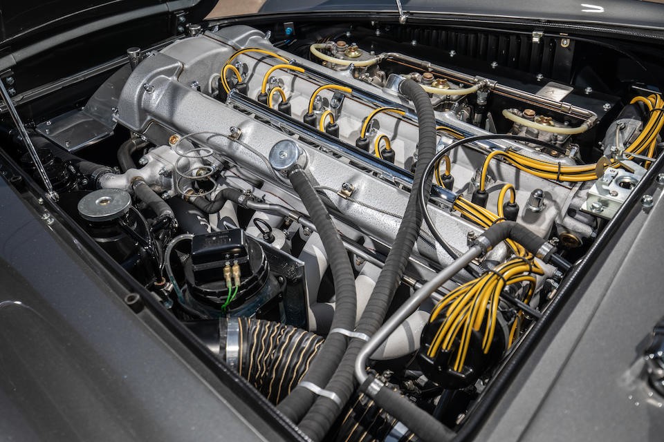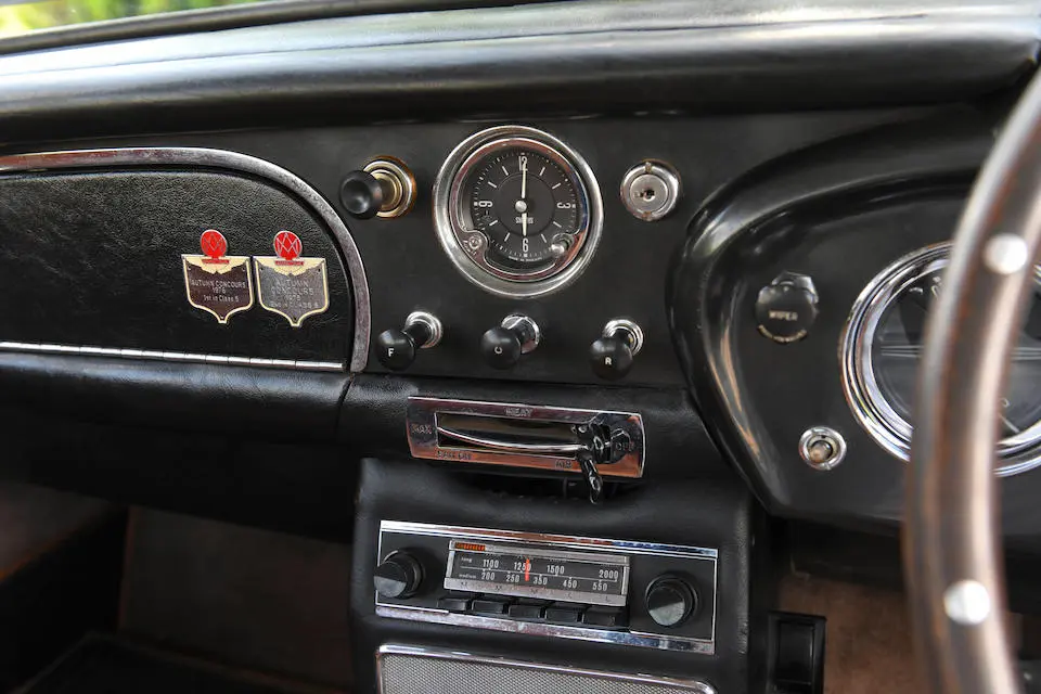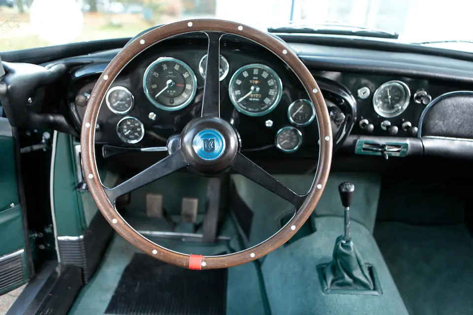 DB4/886/L : DB4 Série 4, CAG, 1/5 avec moteur double allumage de la DB4GT, moteur 370/0209GT, overdrive, jantes à rayons chromés, servofrein, tableau de bord de la GT, manomètre température d’huile, chauffage Bray, moteur 370/0209 GT.