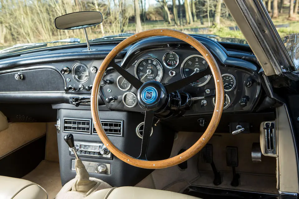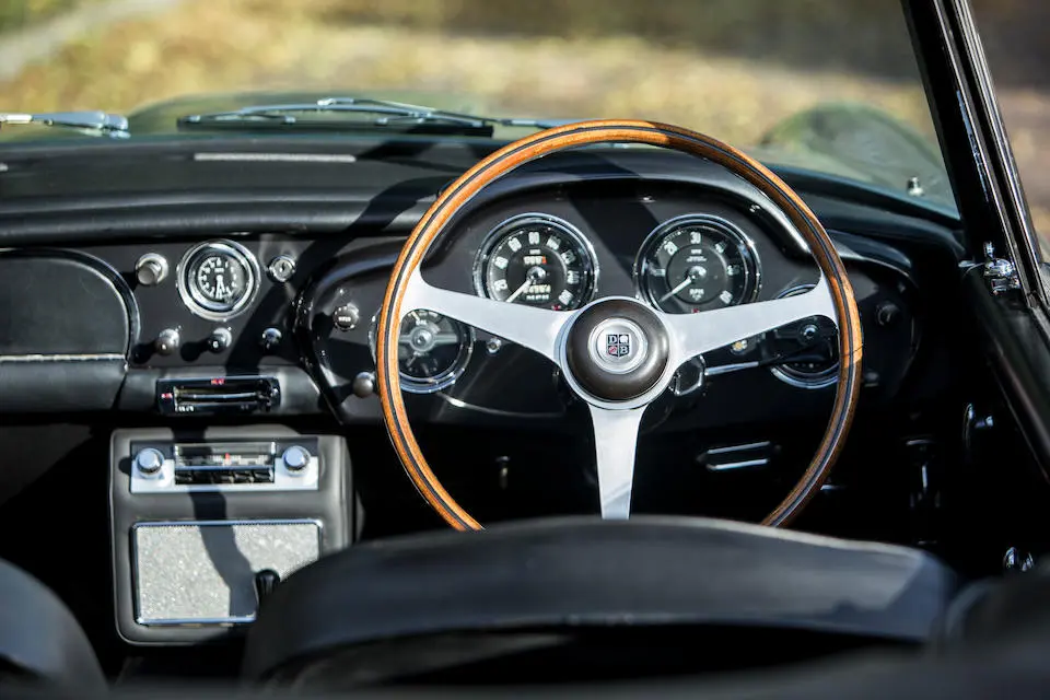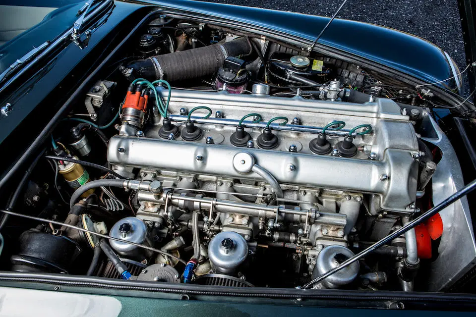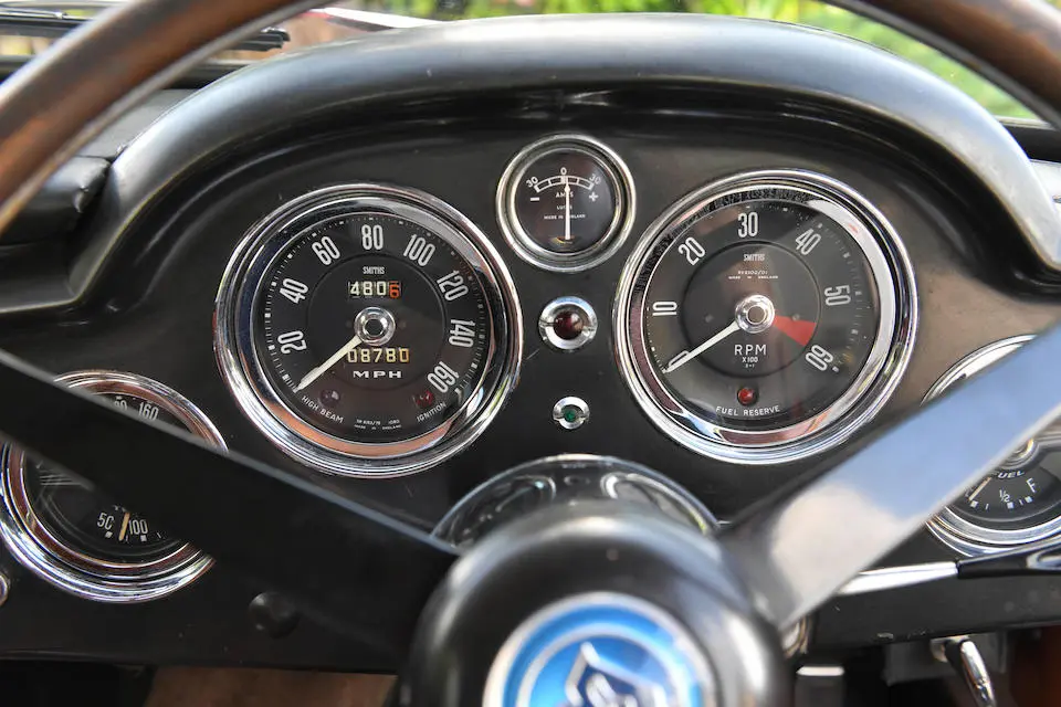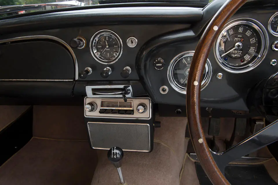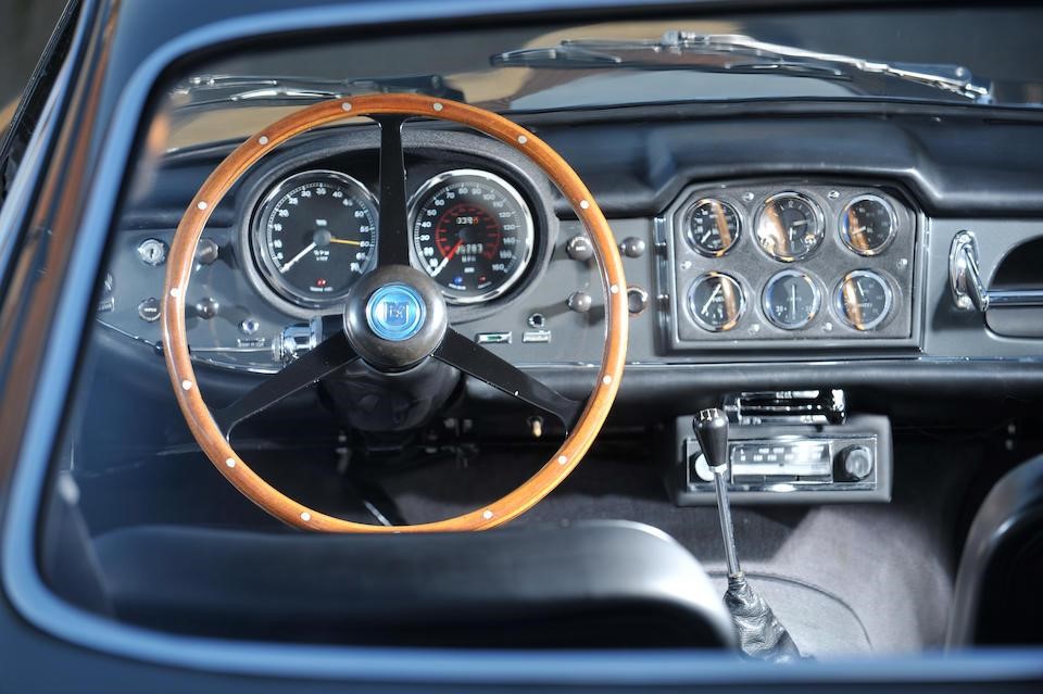 DB4/886/L : DB4 Série 4, CAG, 1/5 avec moteur double allumage de la DB4GT, moteur 370/0209GT, overdrive, jantes à rayons chromés, servofrein, tableau de bord de la GT, manomètre température d’huile, chauffage Bray, moteur 370/0209 GT.