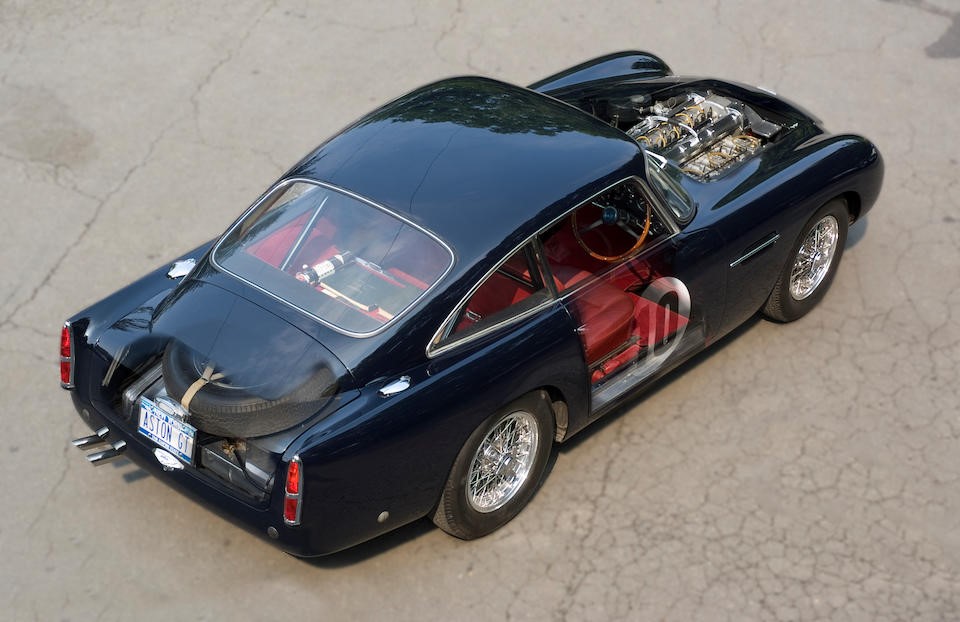 DB4GT/0190/L : 26/06/1962, DB4GT/Zagato, moteur 370/0190/GT, CAG, panneaux d’aluminium plus épais, calandre spécifique dessinée par Murray, entourage de pare-brise en laiton chromé, vitres latérales en verre, poignées de porte en laiton chromé, ailerons arrières de DB4, étriers de frein spéciaux, double circuit de freinage Lancia, sièges de DB4GT, boîte à gant fermant à clé, instrumentation marque italienne, Shell Grey.