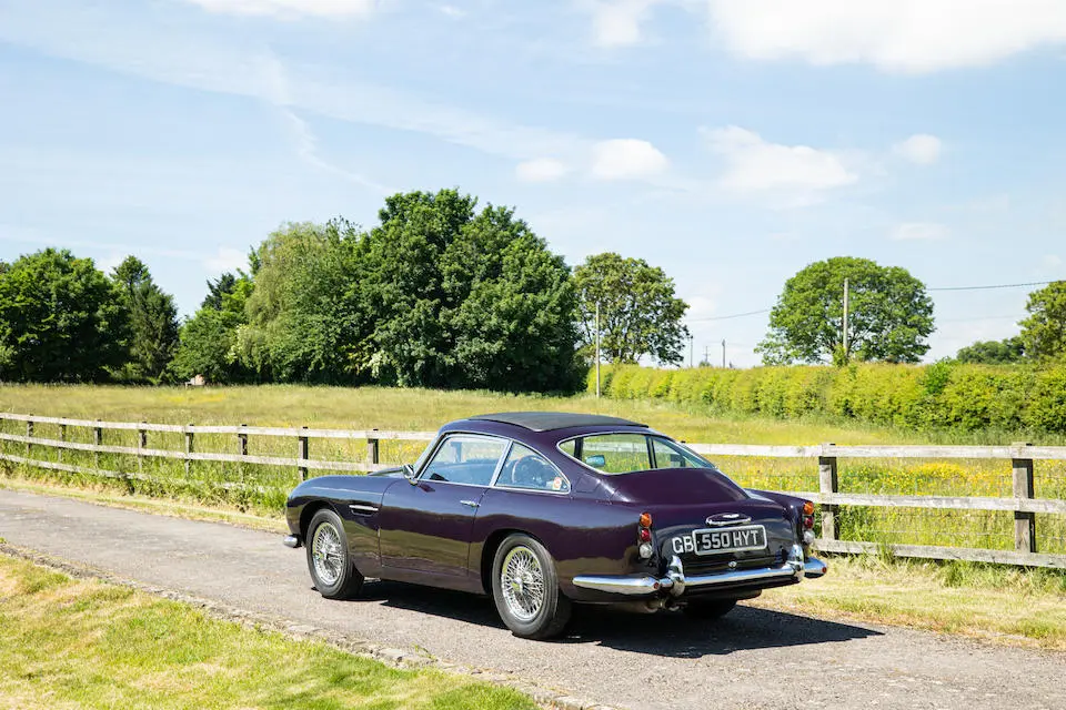 DB4/973/R : 1962, DB4 Vantage, moteur 1003 SS, phares carénés, toit ouvrant Webasto, jantes à rayons chromés, tableau de bord DB4GT, vitres électriques, dégivrage lunette arrière, Roman Purple, cuir gris bleu.